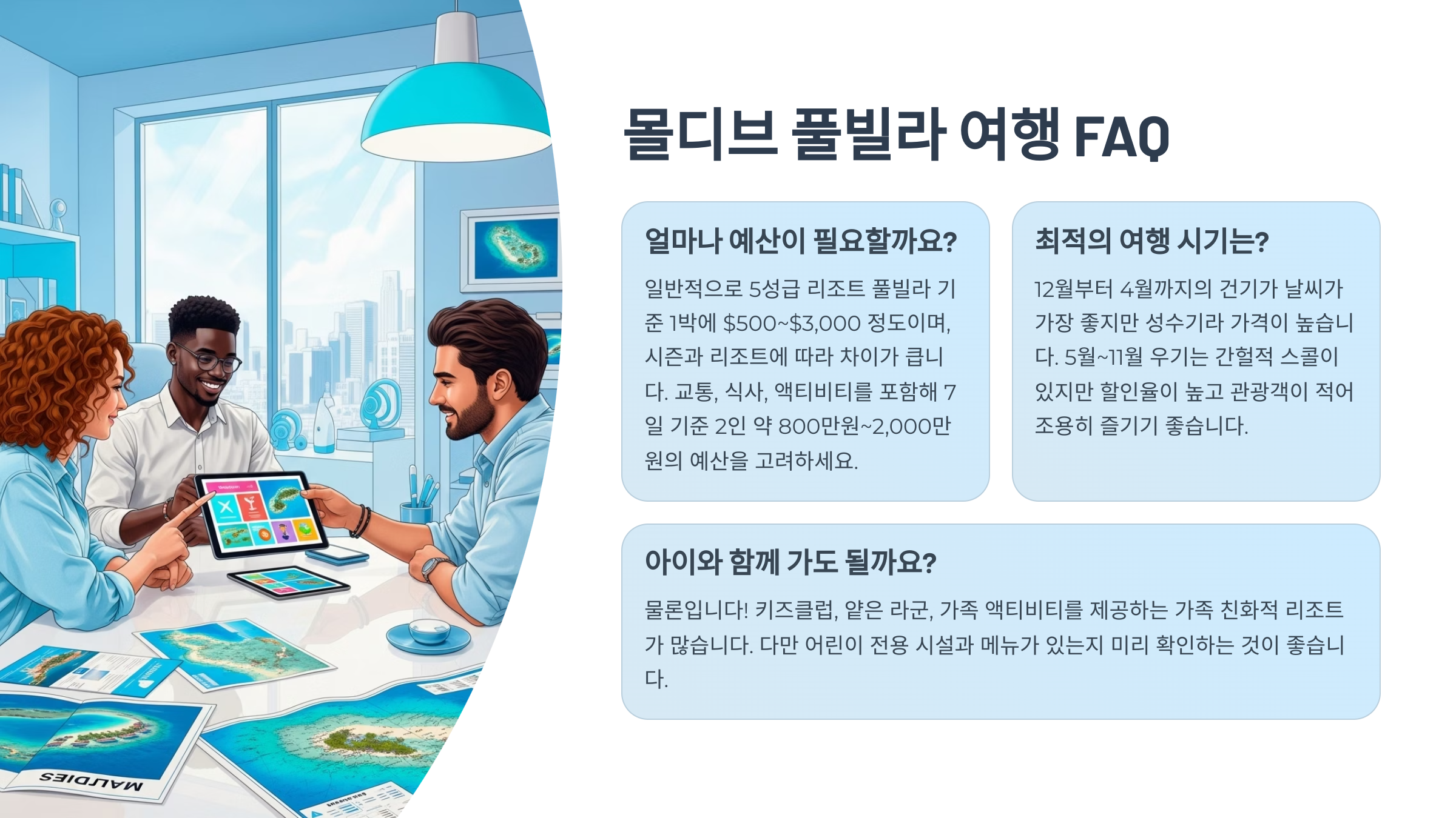👇 마지막으로 몰디브 풀빌라 여행 관련 FAQ를 통해 궁금증을 해결해 보세요!