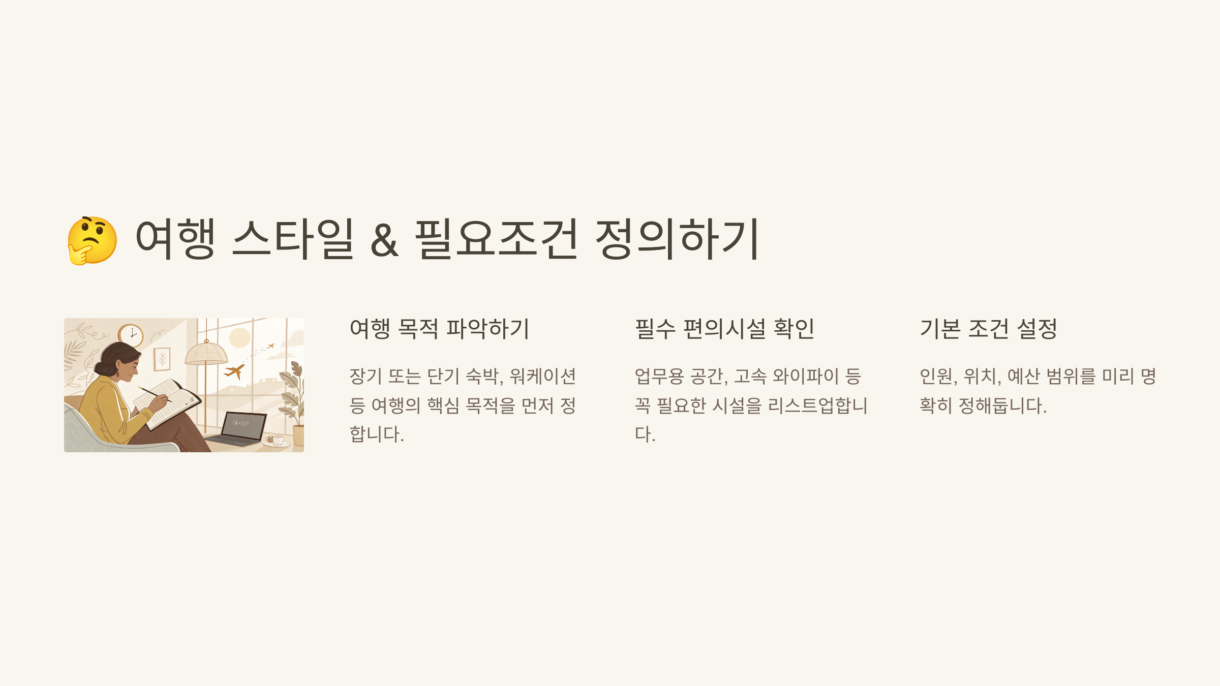 ① 🤔 첫 단추 잘 꿰기: 나의 여행 스타일 & 필요조건 정의하기