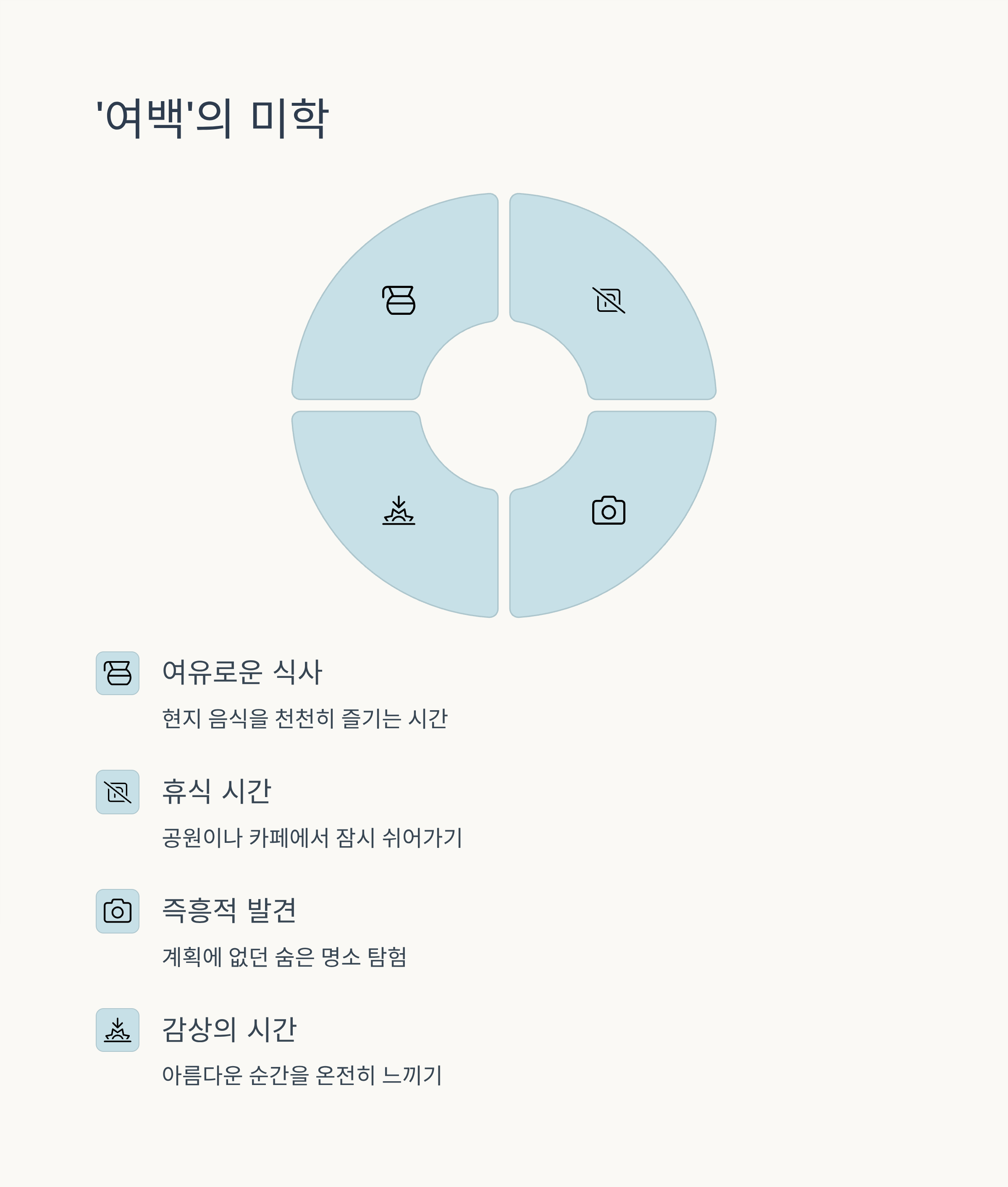 A3. 네, 빡빡한 일정은 오히려 피로도를 높이고 예상치 못한 변수에 취약하게 만듭니다. '여백의 미'를 두어 자유로운 시간을 확보하고, 유연하게 여행을 즐기는 것이 좋습니다.