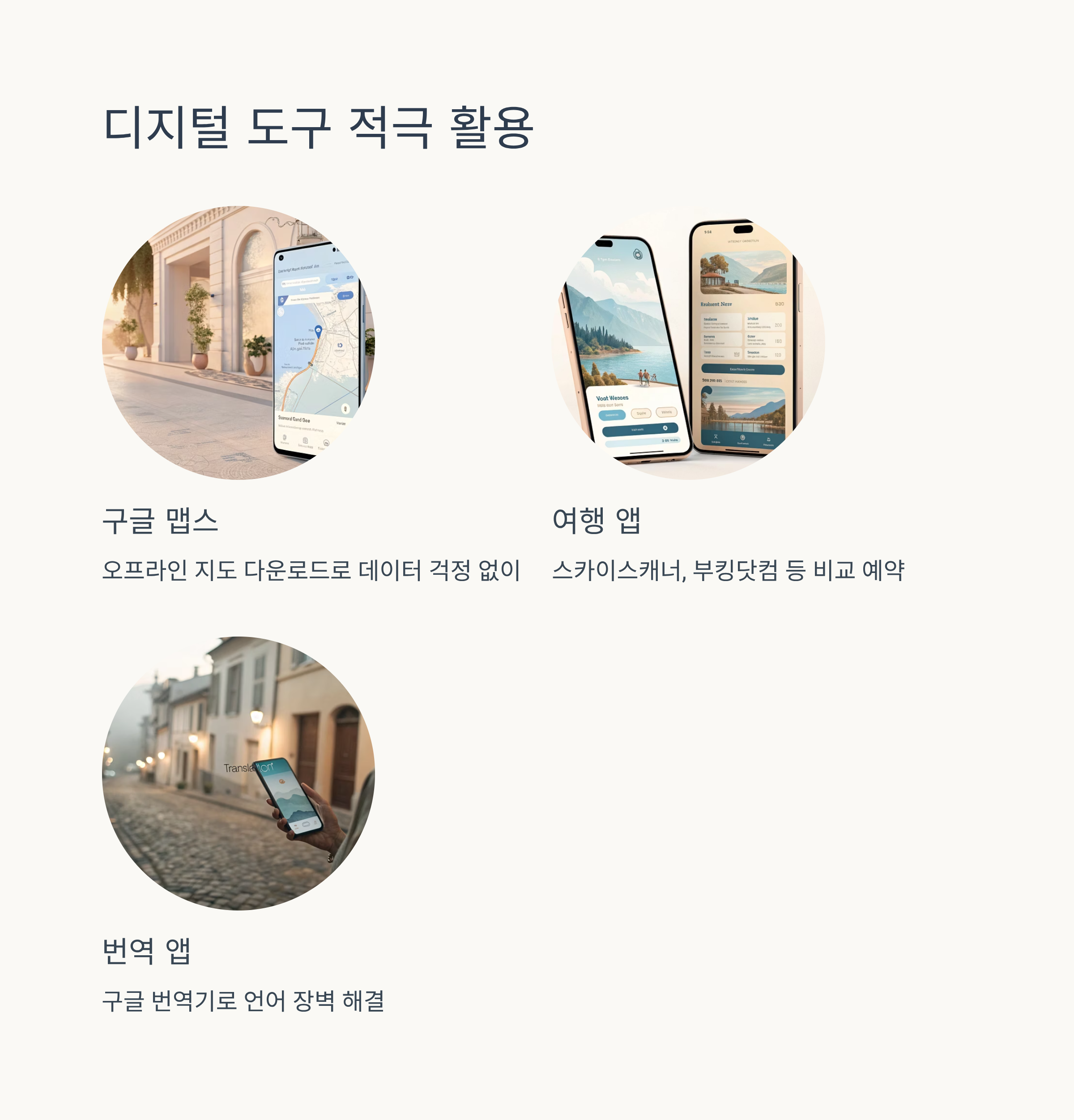 다양한 여행 계획 앱, 웹사이트, 스마트폰 기능을 활용하여 편리하고 효율적으로 일정을 관리합니다.
