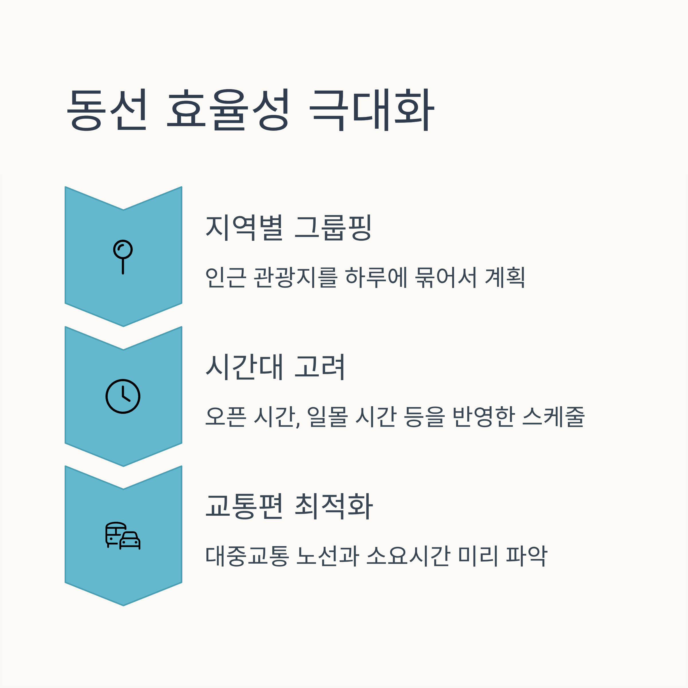 - 스트레스 감소: 목적 없이 헤매는 시간을 줄여 여행 중 발생할 수 있는 스트레스를 최소화합니다.