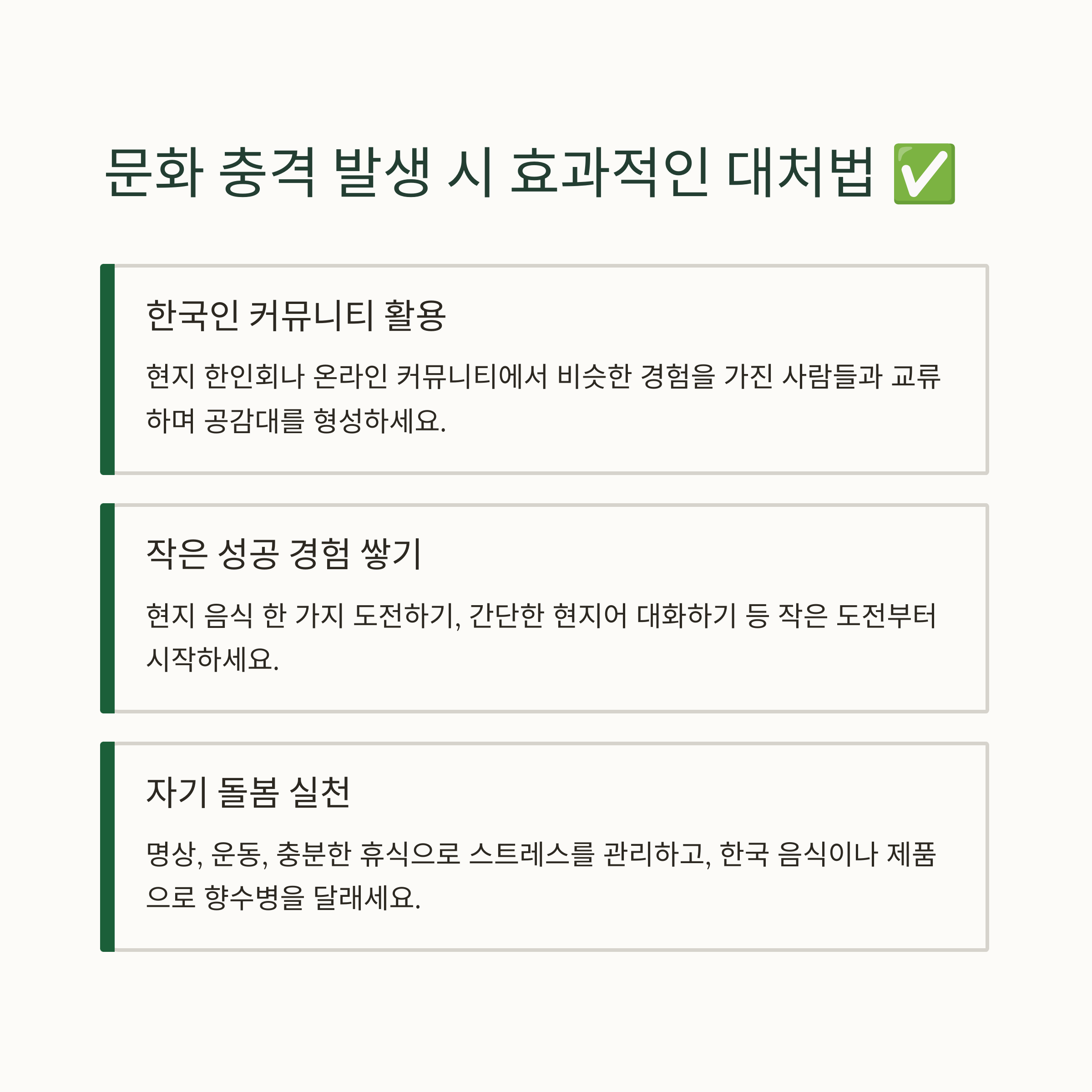 🩹 문화 충격 대처 요령