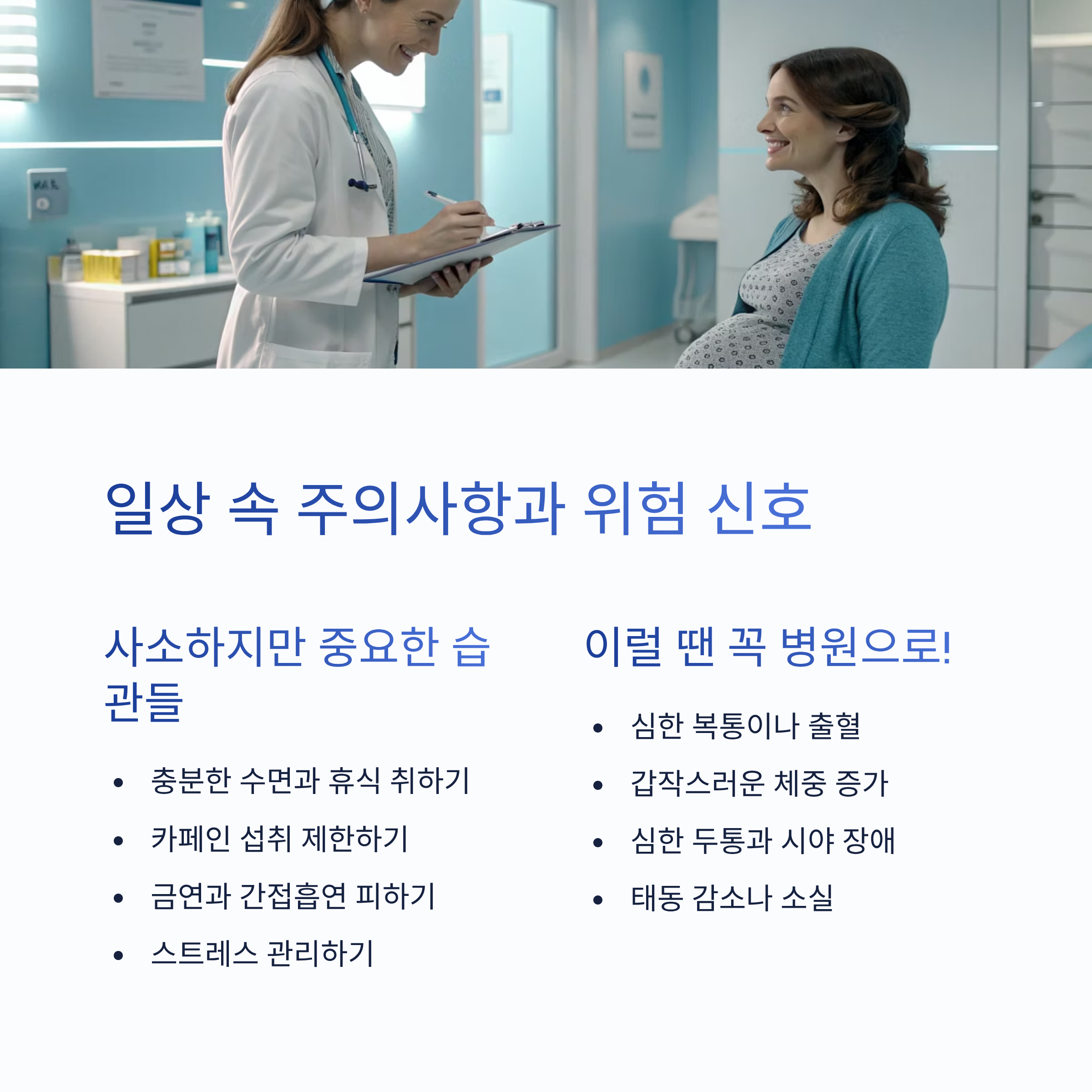 - 술과 담배: 태아에게 치명적인 영향을 미칠 수 있으므로 절대 금물입니다.
