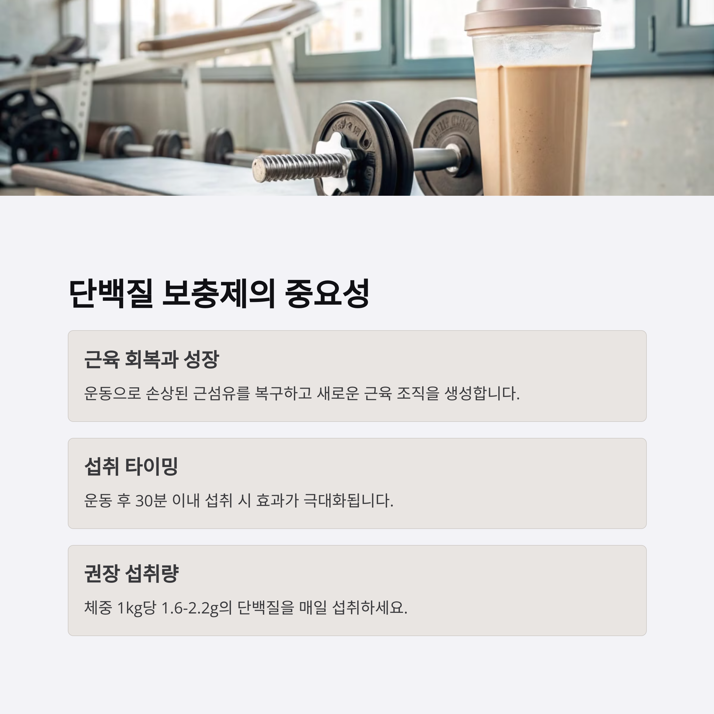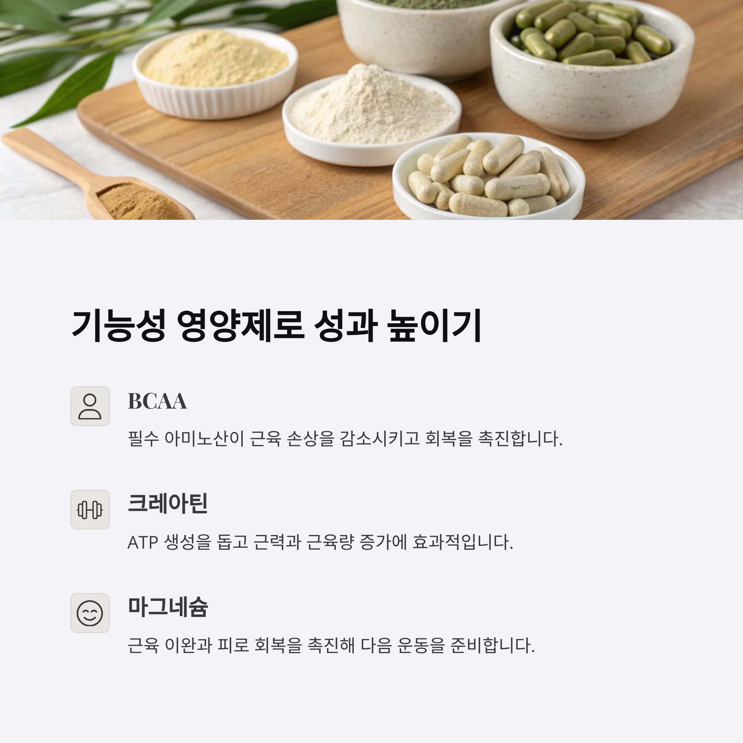 | 단백질 보충제 | 근육 성장과 회복에 필수적인 보충 성분입니다. |