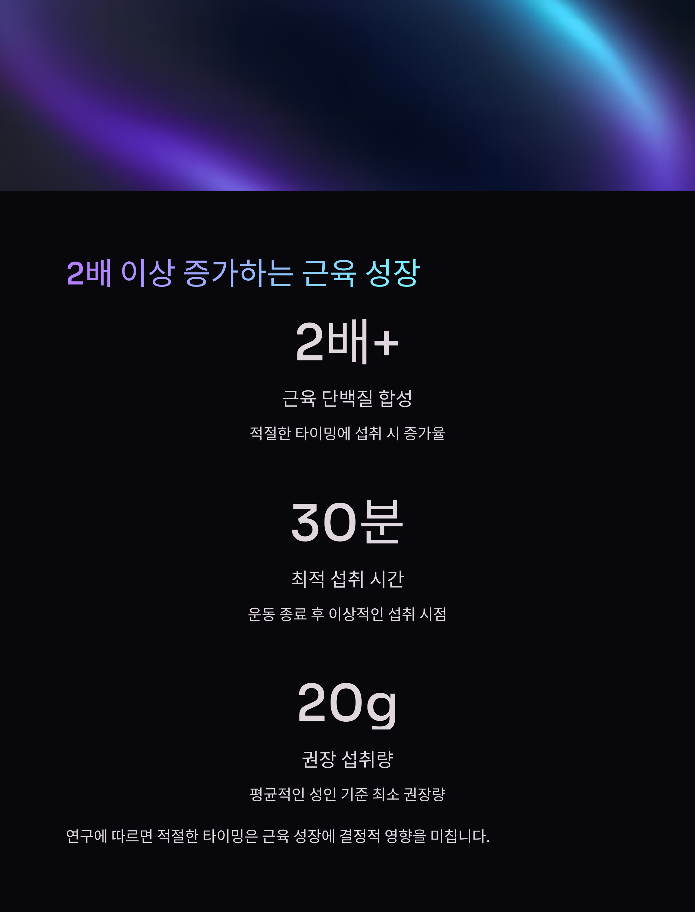 | 단백질 합성 | 회복 속도 | 탄수화물과의 조합 |