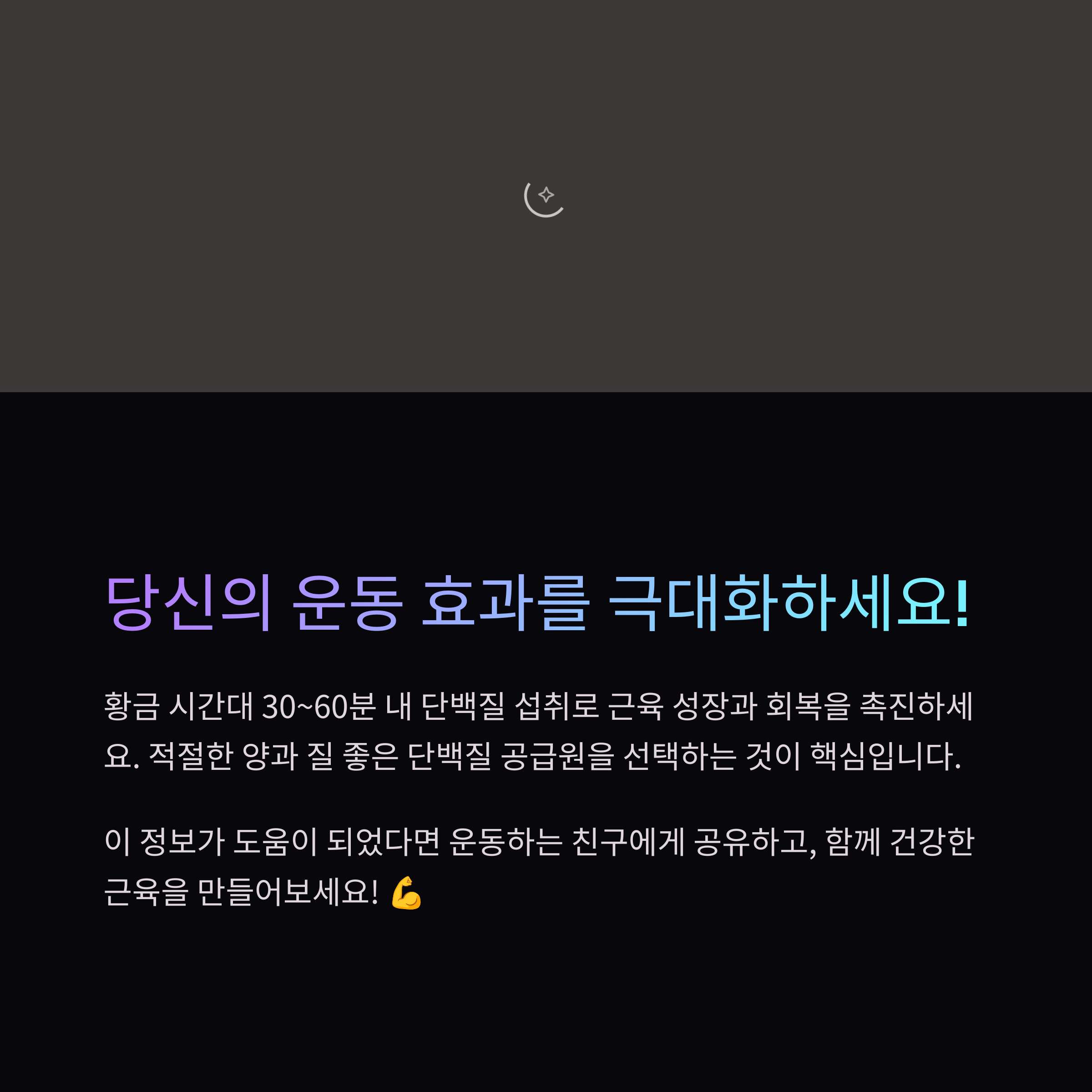 단백질 섭취 타이밍은 근육 성장과 회복에 결정적인 역할을 합니다. **운동 후 30~60분 이내**에 단백질을 섭취하면 **근육 합성률을 최대화**할 수 있습니다. 또한, 천연 단백질 식품과 보충제를 적절히 활용하면 더욱 효율적인 영양 섭취가 가능합니다. 단백질 섭취 습관을 잘 관리하여 건강한 운동 생활을 이어가세요!