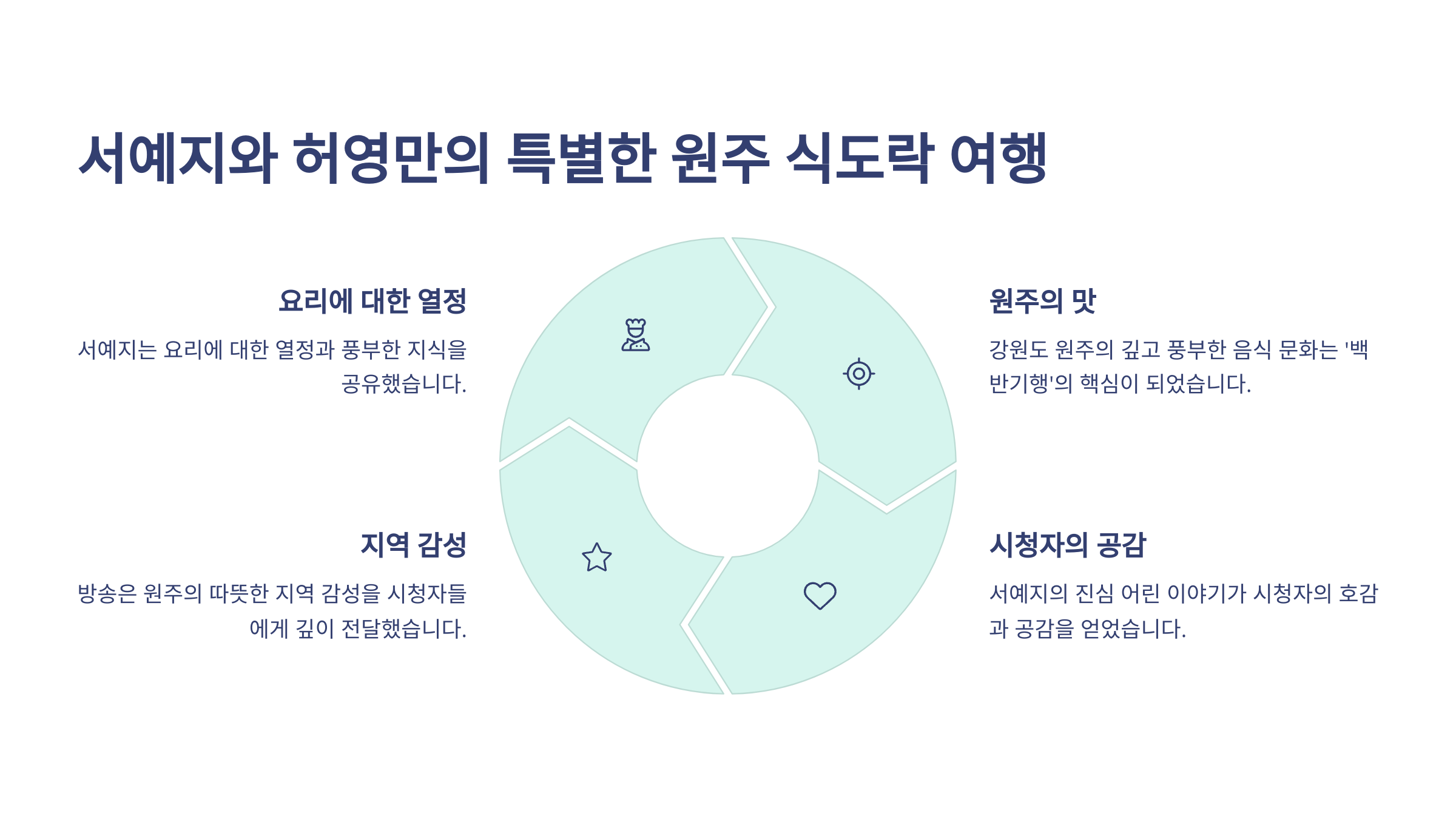 강원도 특유의 식재료와 전통 요리가 현대 방송으로 재해석된 점도 매우 신선한 시도였습니다.