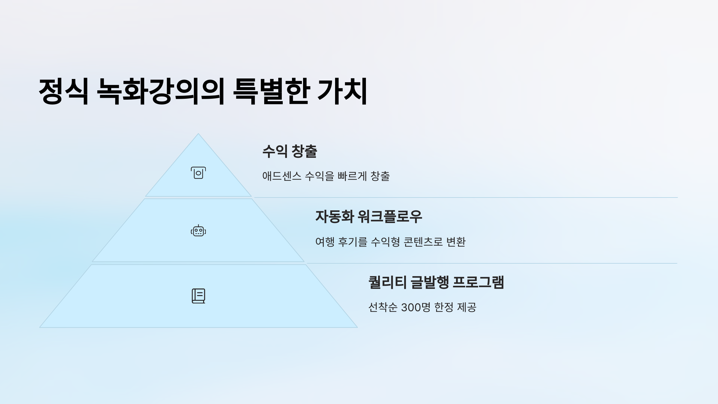 단순한 여행 정보가 아니라 "퀄리티 글발행 프로그램"이 포함됩니다.