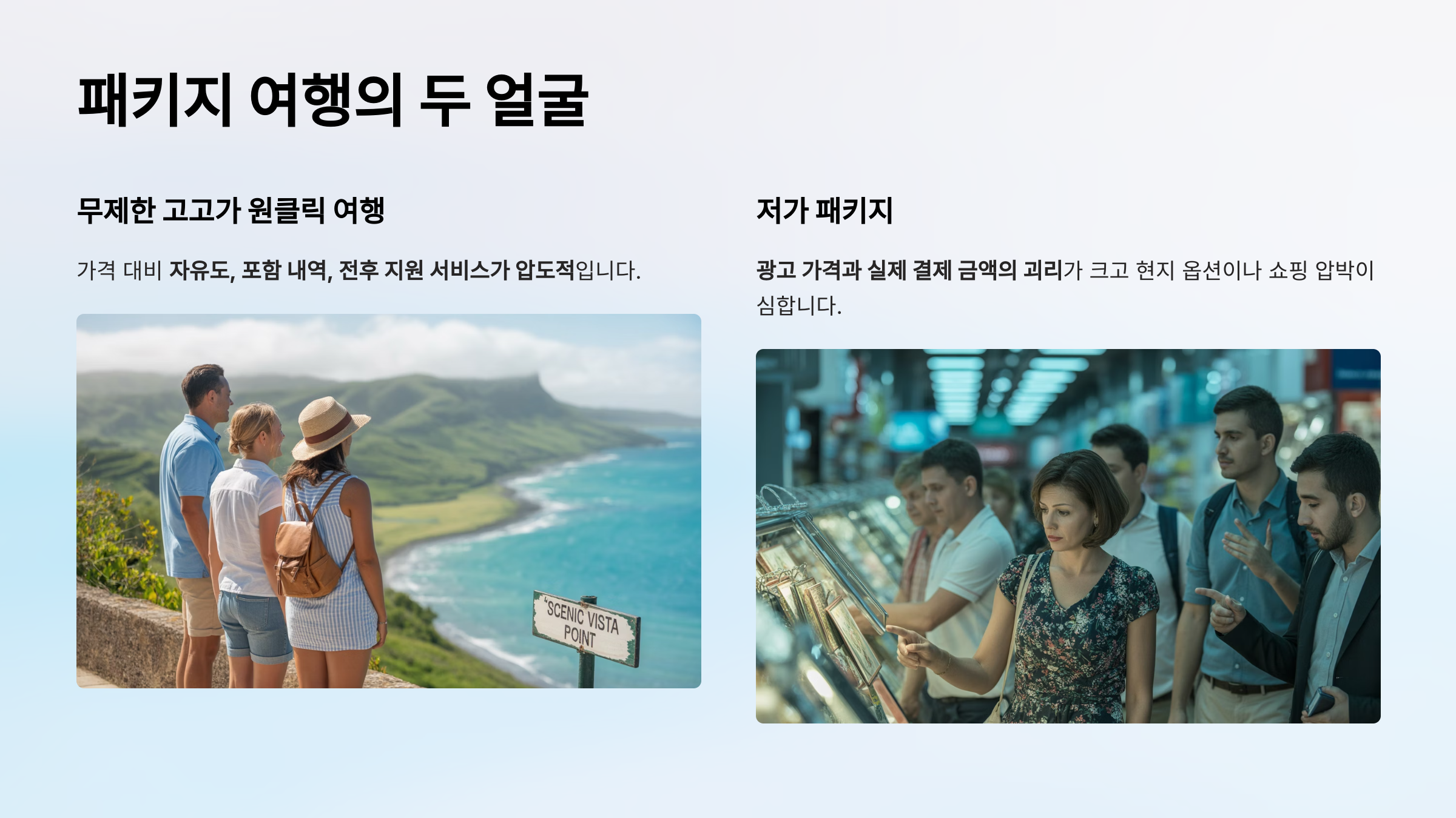 한 번의 클릭으로 떠나는 패키지 여행, 과연 그 속은 어떨까요?