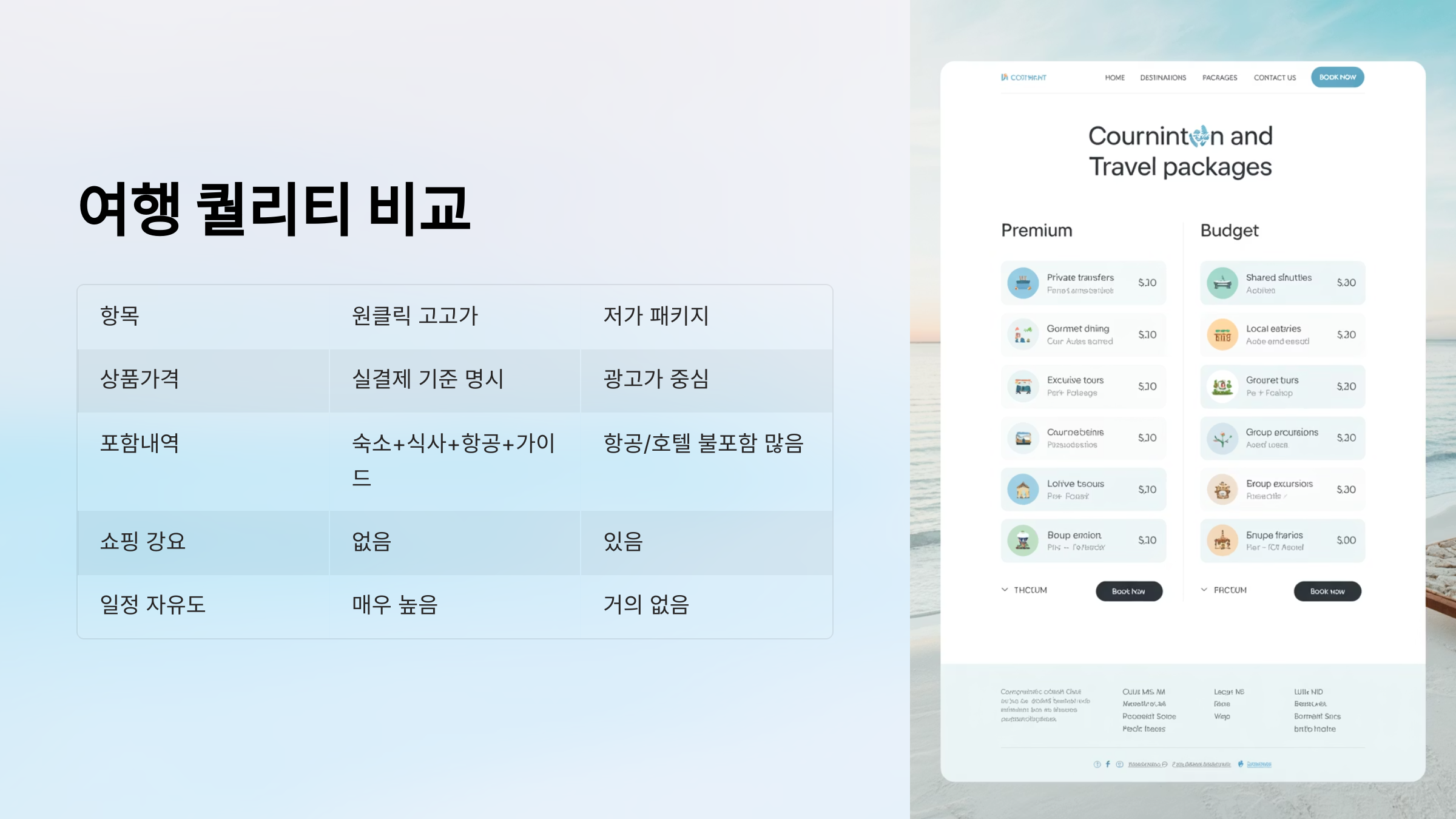 여행 퀄리티, 단순 가격으로 판단하지 마세요