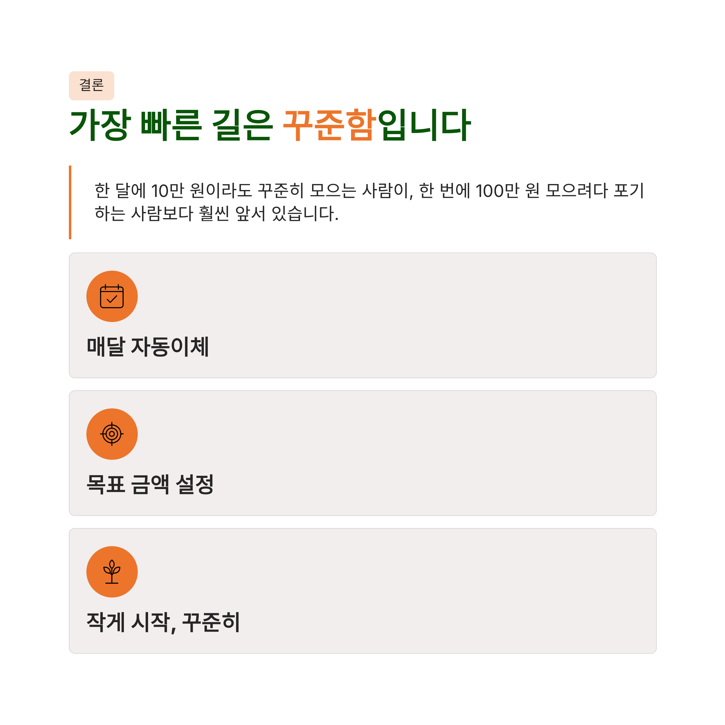 - 청약 통장 (필수): 월 10~20만 원은 무조건 넣으세요. 내 집 마련의 최소한의 티켓입니다.