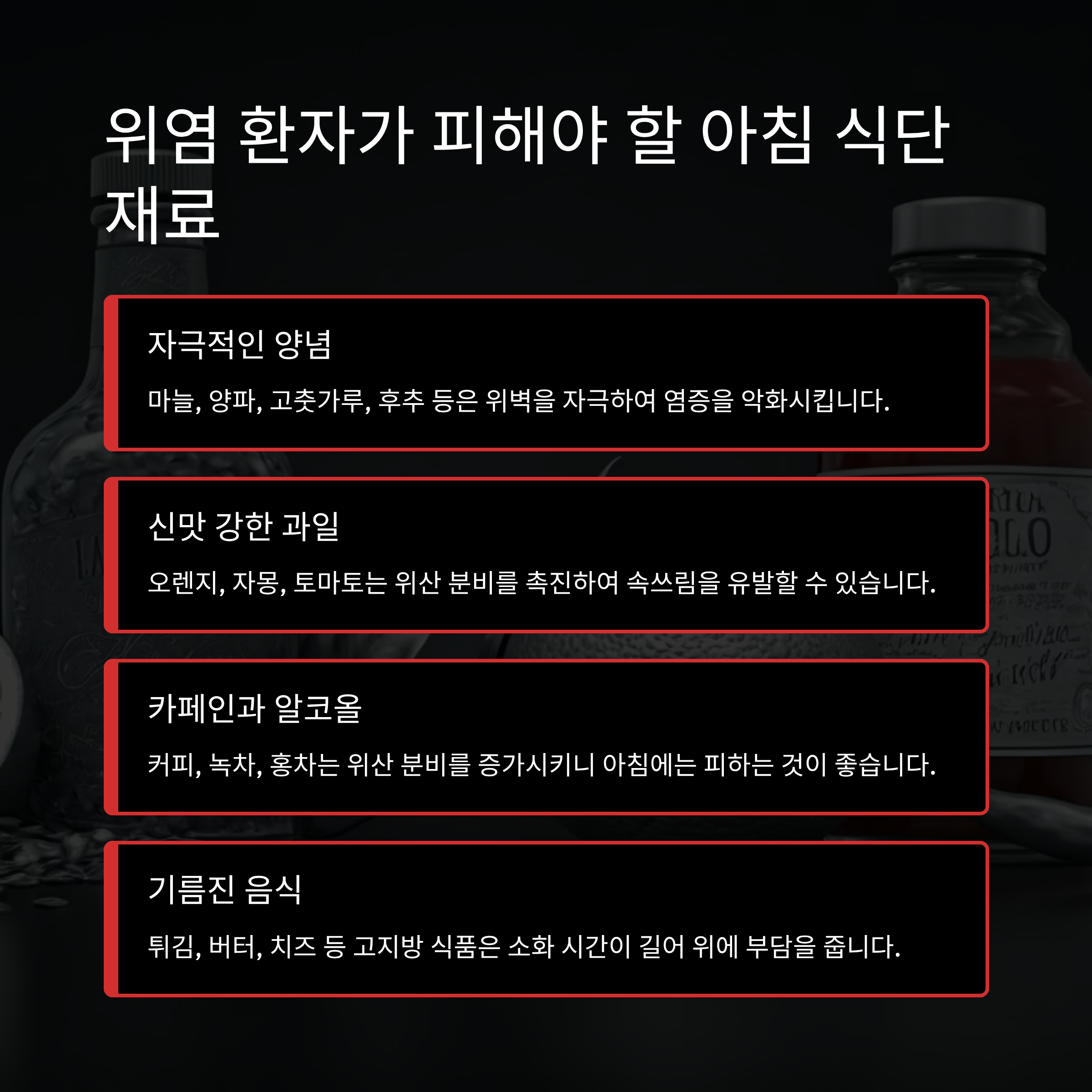 위염 환자가 피해야 할 아침 식단 재료 🚫