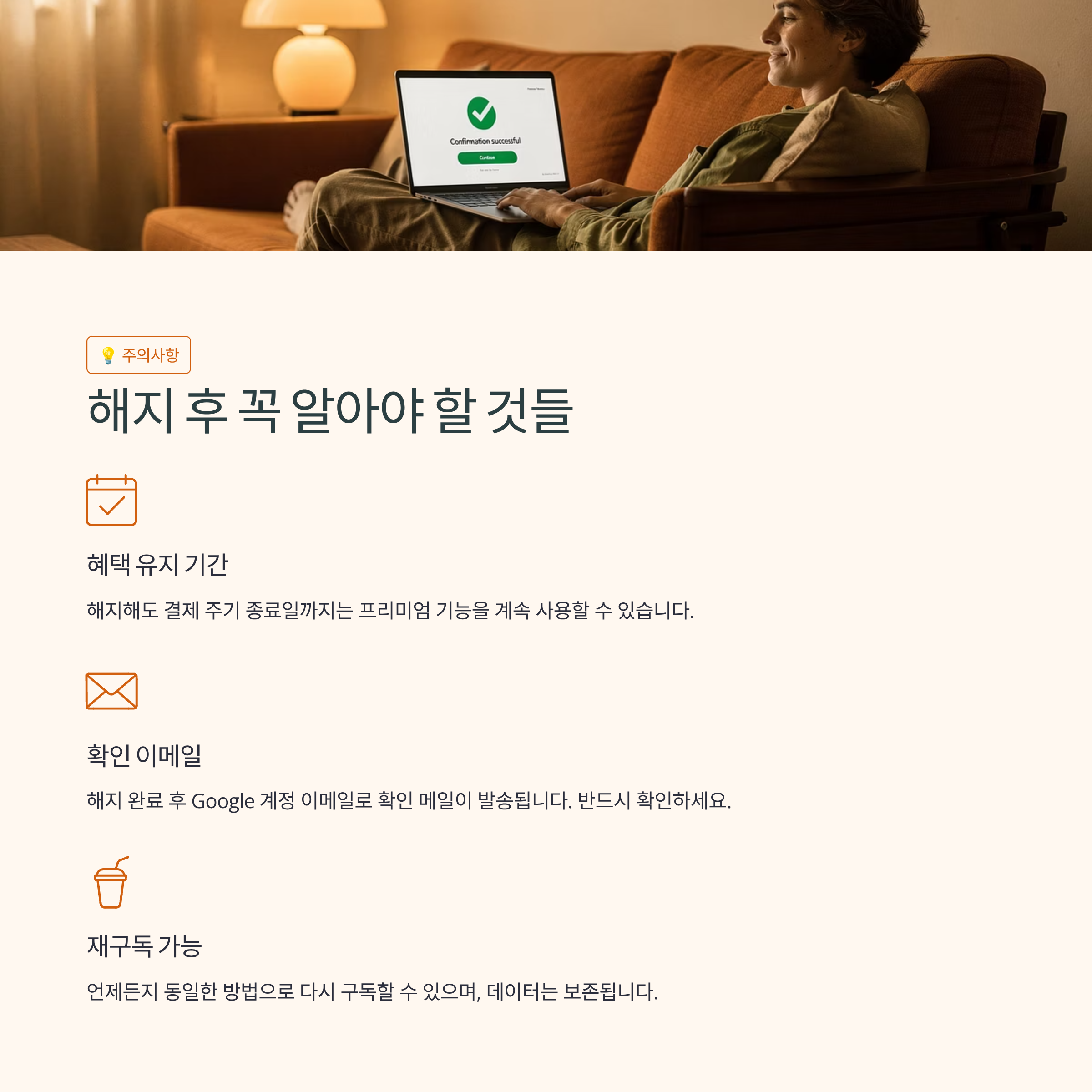 - 비용 절감: 더 이상 서비스가 필요 없거나, 월별 구독료가 부담스러울 때 불필요한 지출을 막을 수 있습니다.