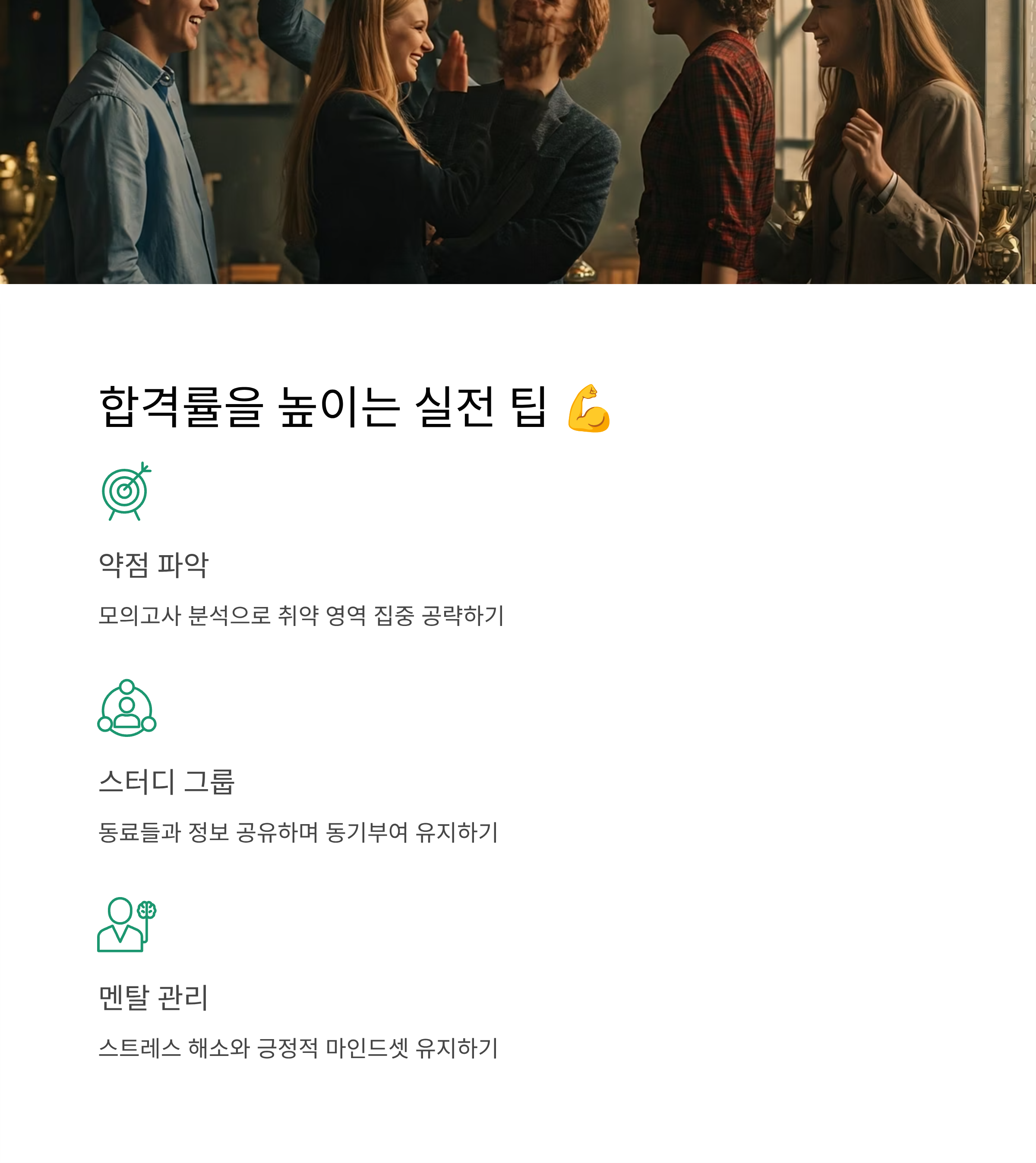 이 모든 과정을 충실히 따랐다면, 여러분은 합격에 한 걸음 더 다가선 것입니다. 자신을 믿고 최선을 다하세요! 🌟