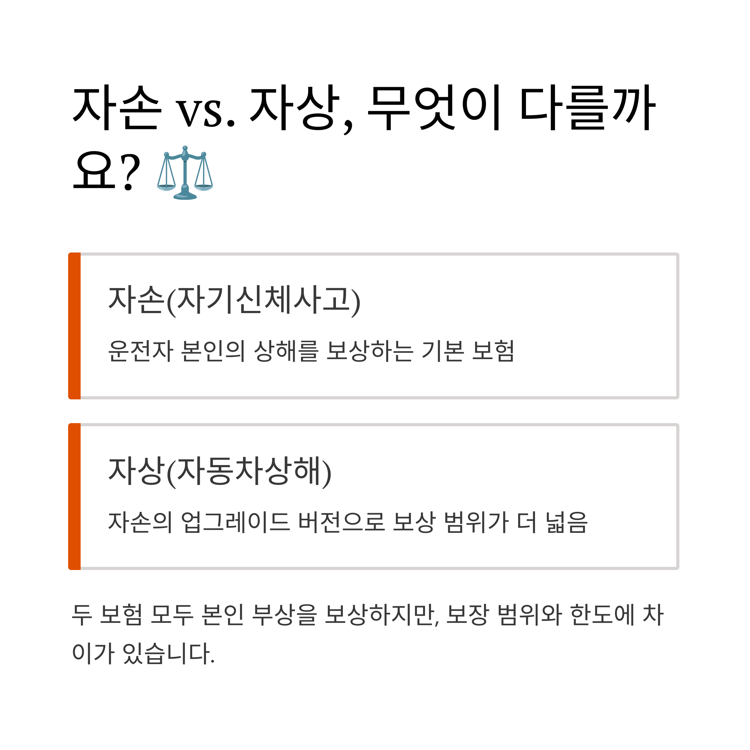 ⚖️ 자손(자기신체사고) vs. 자상(자동차상해), 무엇이 다를까요?