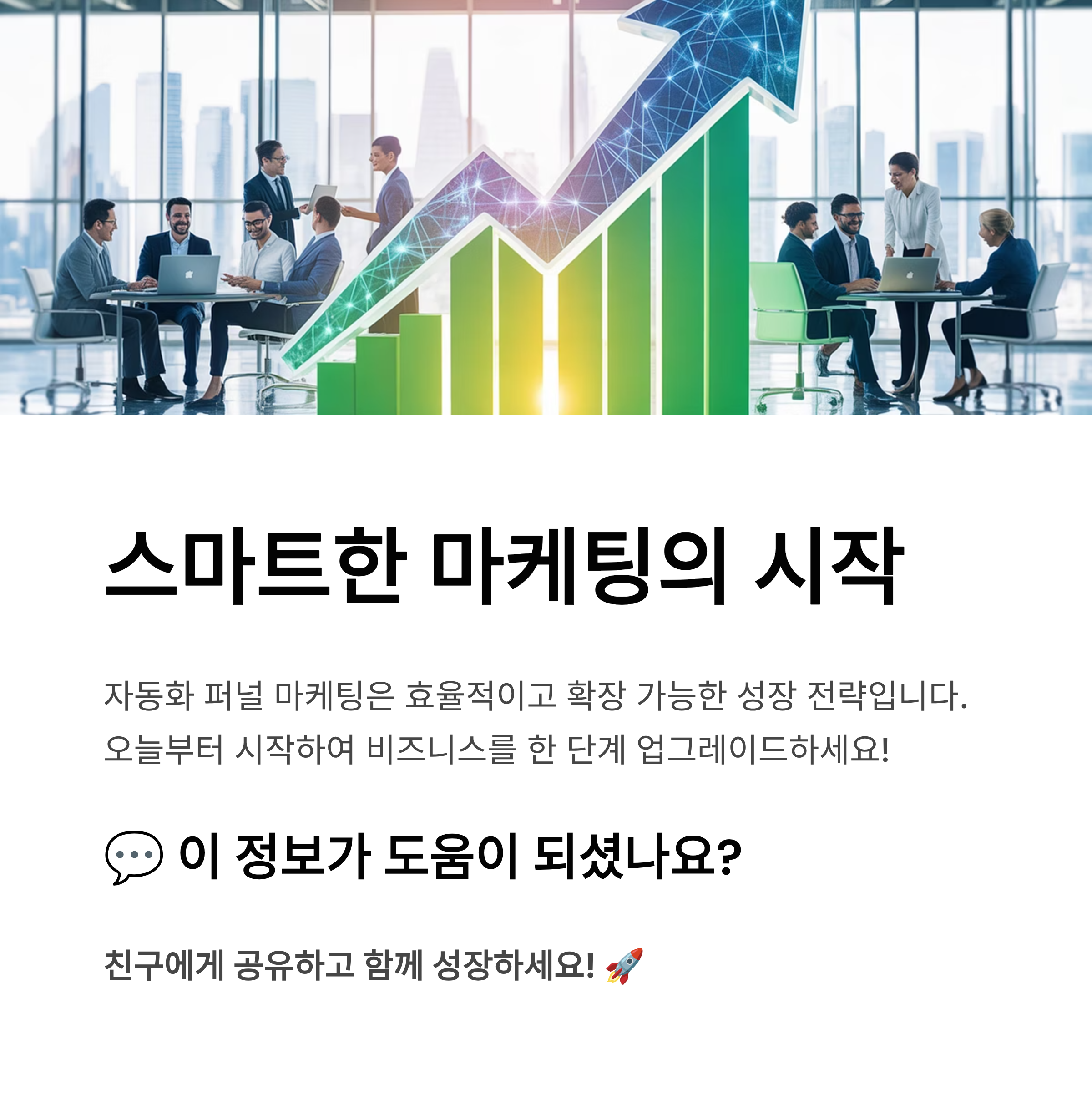 - 확장성: 비즈니스 규모가 커져도 자동화된 시스템은 추가적인 인력 없이 마케팅 활동을 확장할 수 있습니다.