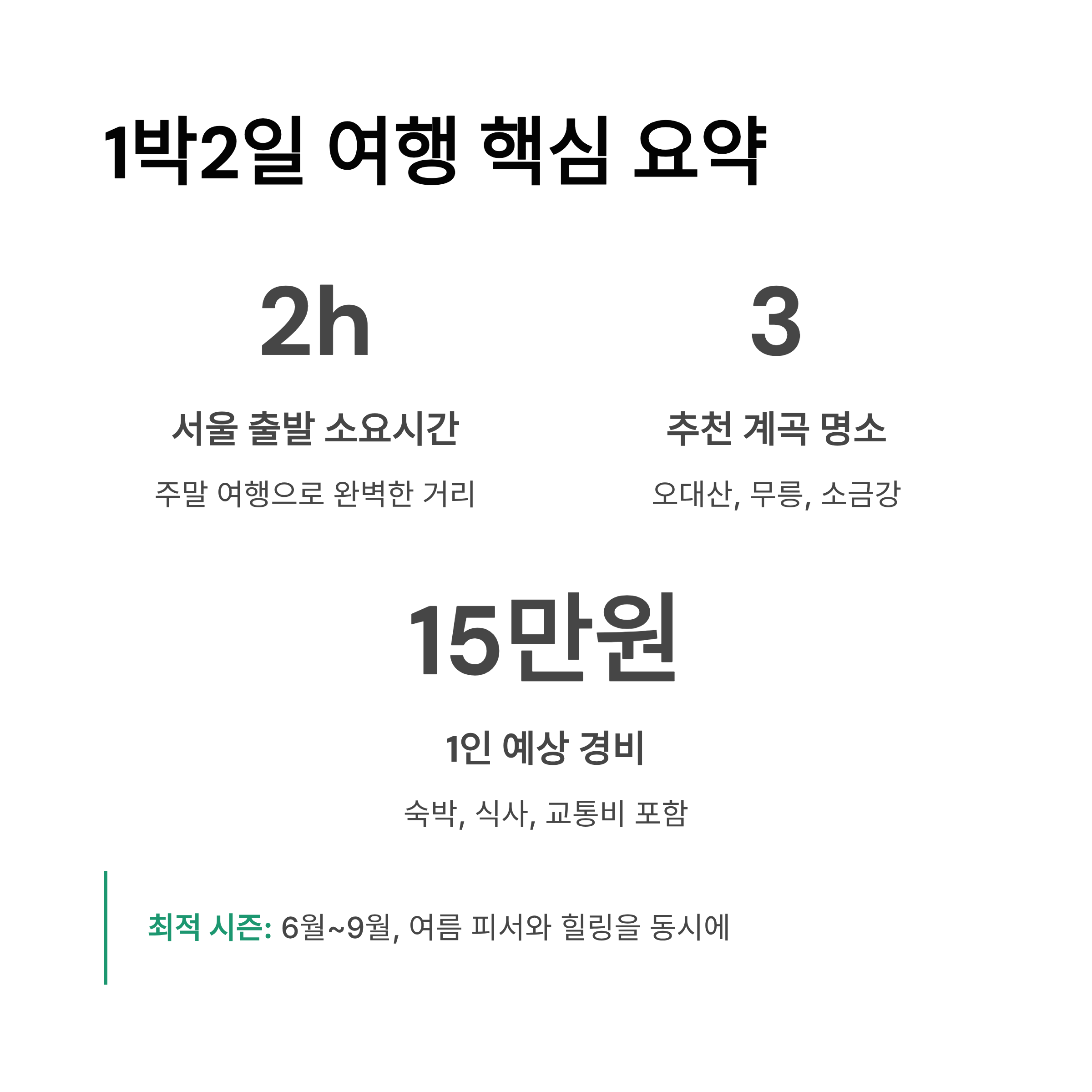 📊 강원도 계곡 1박2일 여행 핵심 요약표