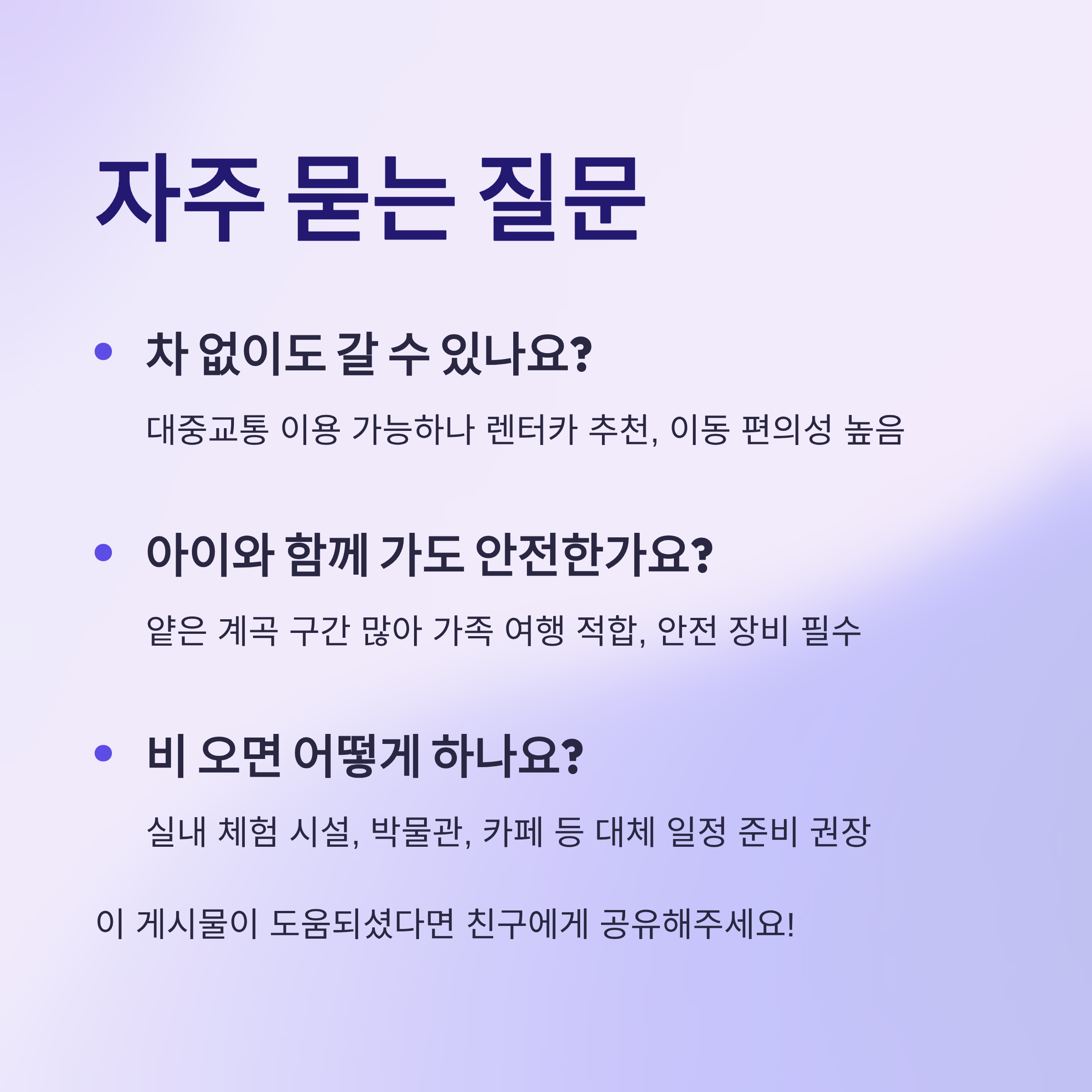 🔽 강원도 계곡 여행에 대한 더 궁금한 점이 있다면 FAQ를 참고하세요! 🔽