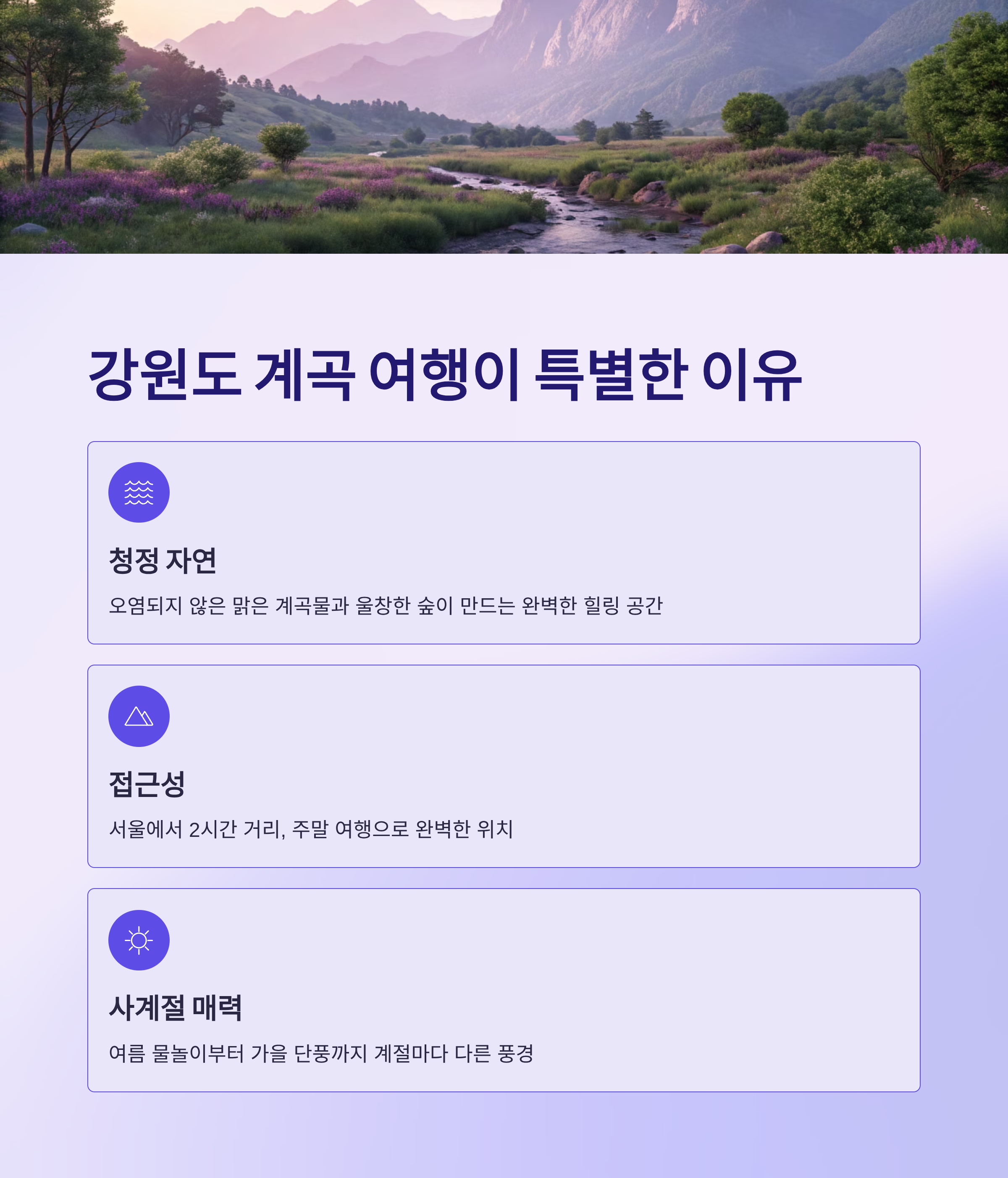 수많은 국내 여행지 중에서도 강원도 계곡은 특별한 매력으로 많은 사람에게 사랑받고 있습니다. 그 이유를 함께 살펴볼까요?