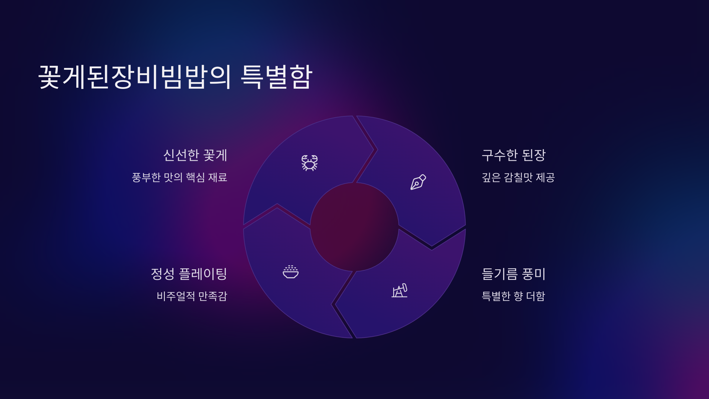 | Q. 꽃게된장비빔밥을 포함한 마무리 코스가 특별히 인기 있는 이유는 무엇인가요? |