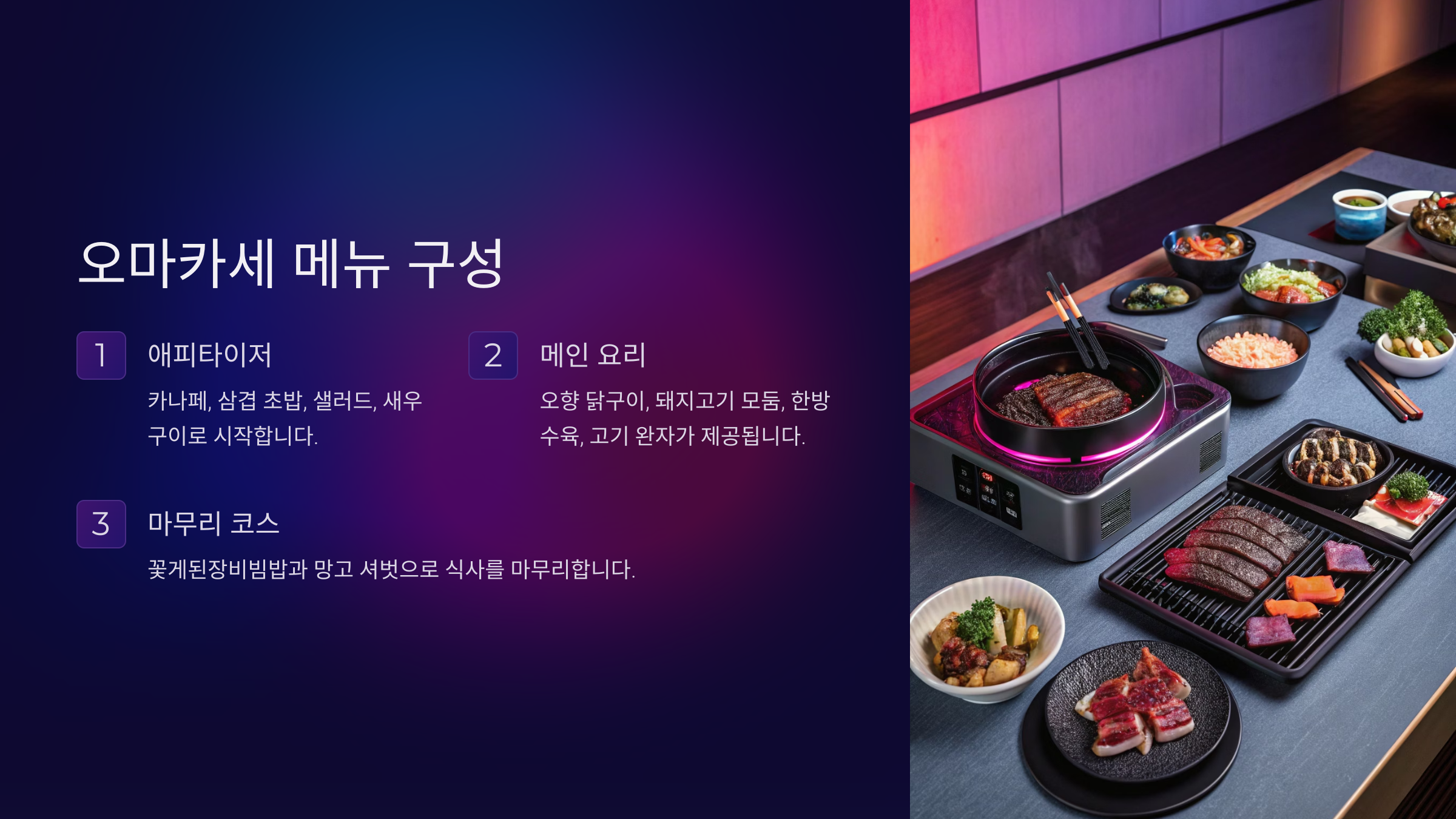 메뉴 구성 - 다채로운 코스의 즐거움