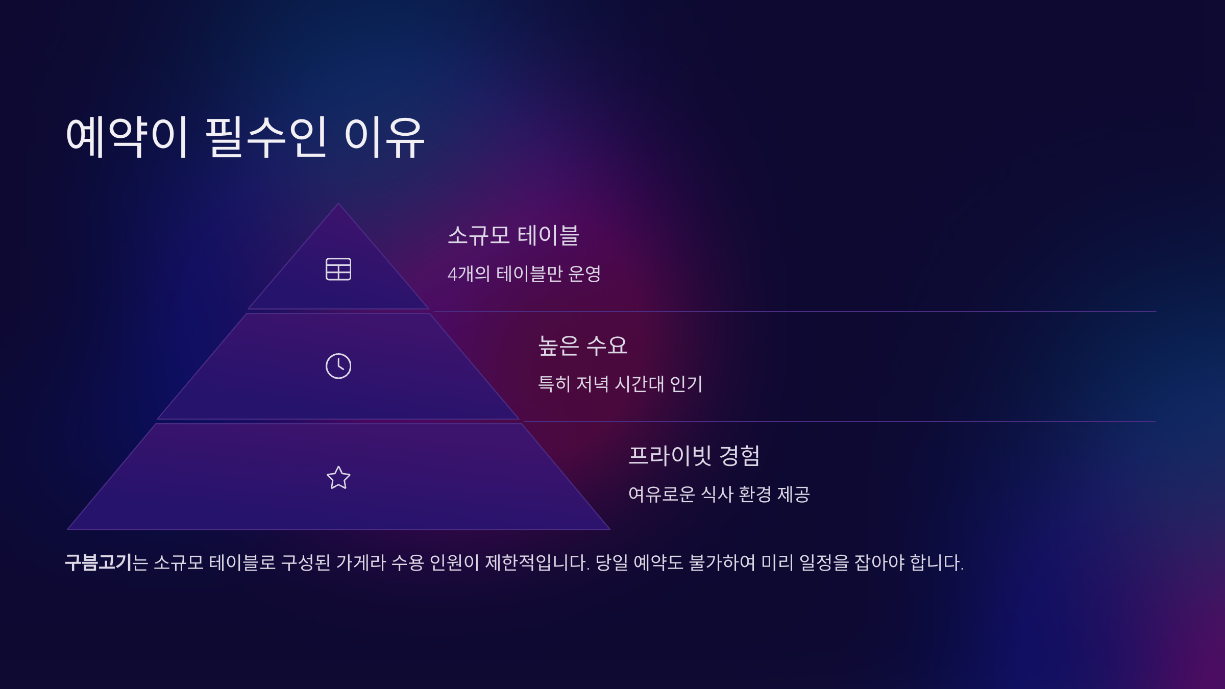 | Q. 왜 '구븜고기'는 예약을 필수로 하나요? |
