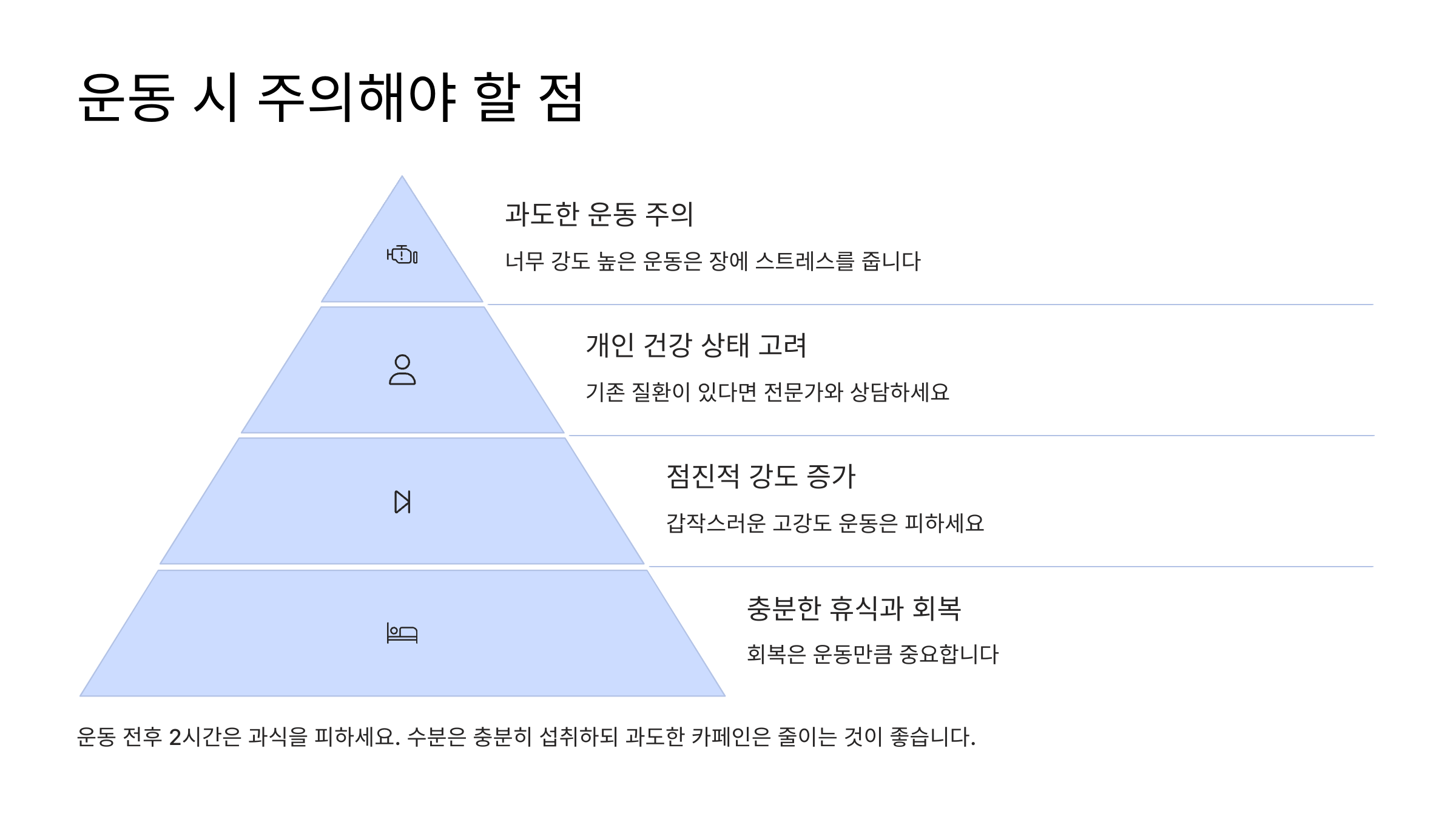 운동이 장 건강에 좋다고 해도 무조건 많이 한다고 좋은 건 아니에요. 오히려 과도한 운동은 장에 부담을 줄 수 있어요. 특히 고강도 운동을 처음부터 무리하게 시작하면 장에 무리가 가고, 복통이나 소화불량을 유발할 수 있답니다.