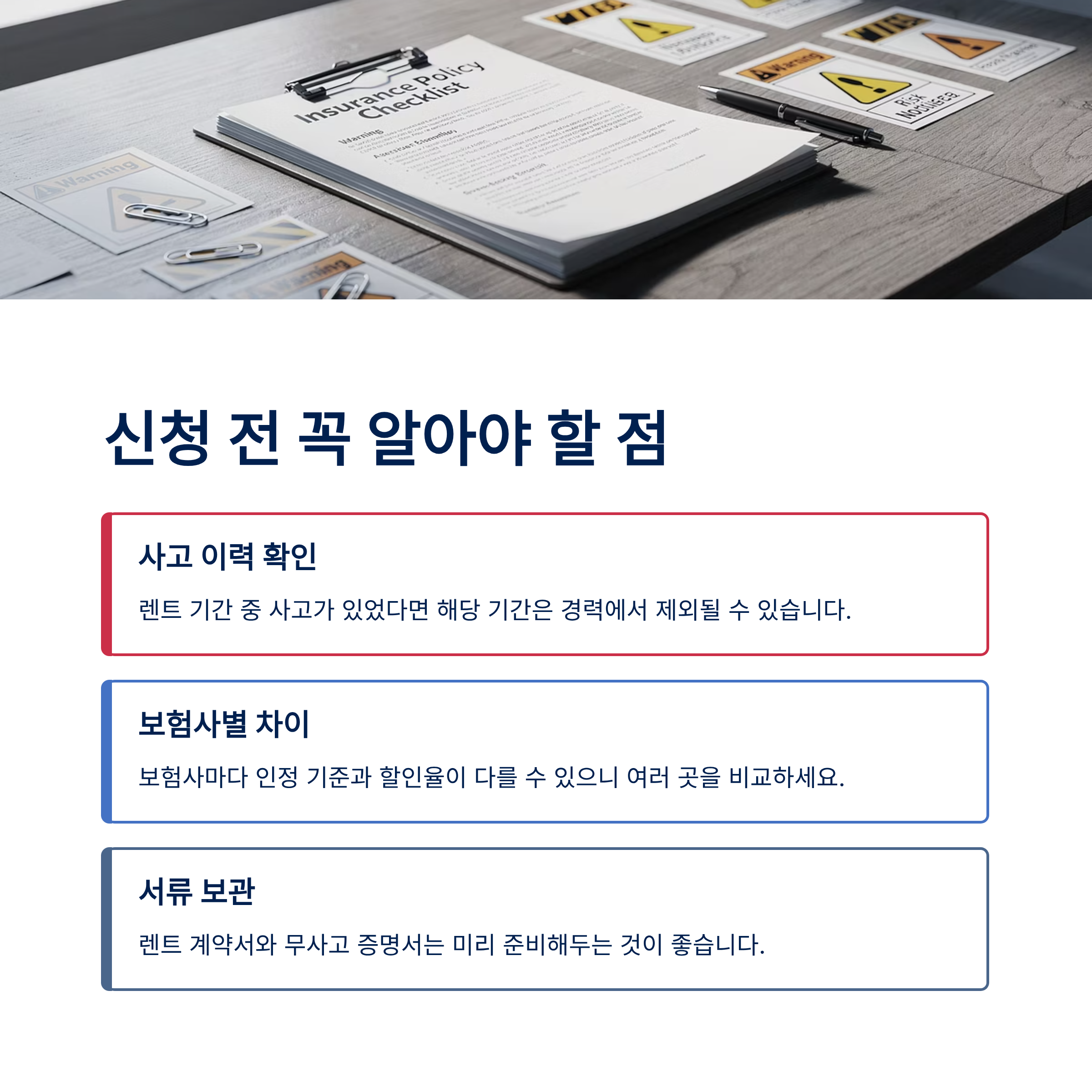 가장 중요한 것은 렌터카 회사에 연락하여 '경력 증명서'를 발급받는 것입니다. 이 서류 하나로 수십만 원의 보험료를 아낄 수 있습니다.