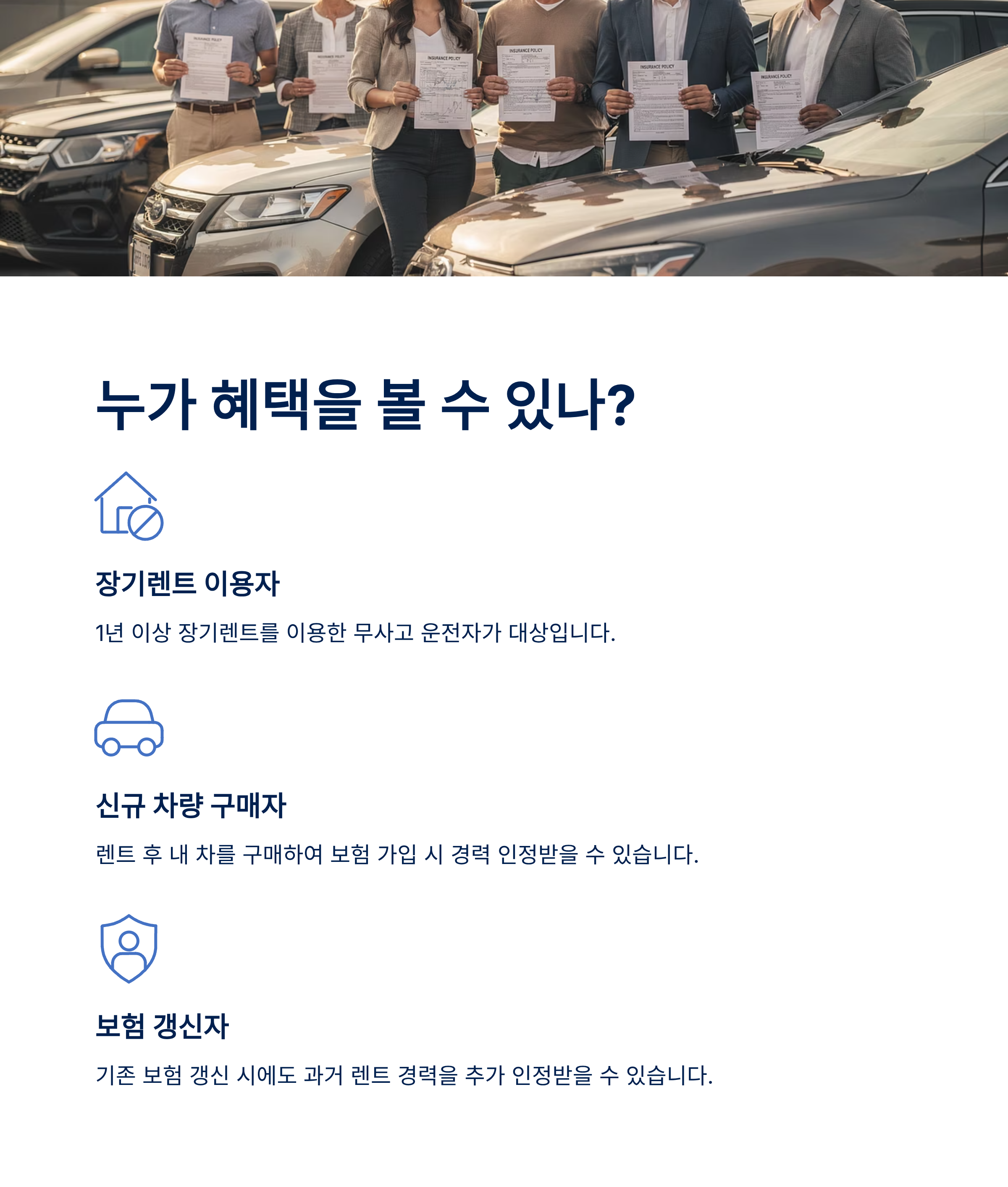 결론적으로, 과거 또는 현재에 장기렌터카(1년 이상) 운전 경험이 있고, 앞으로 개인 자동차 보험에 가입할 계획이 있는 거의 모든 사람이 혜택 대상이라고 할 수 있습니다.