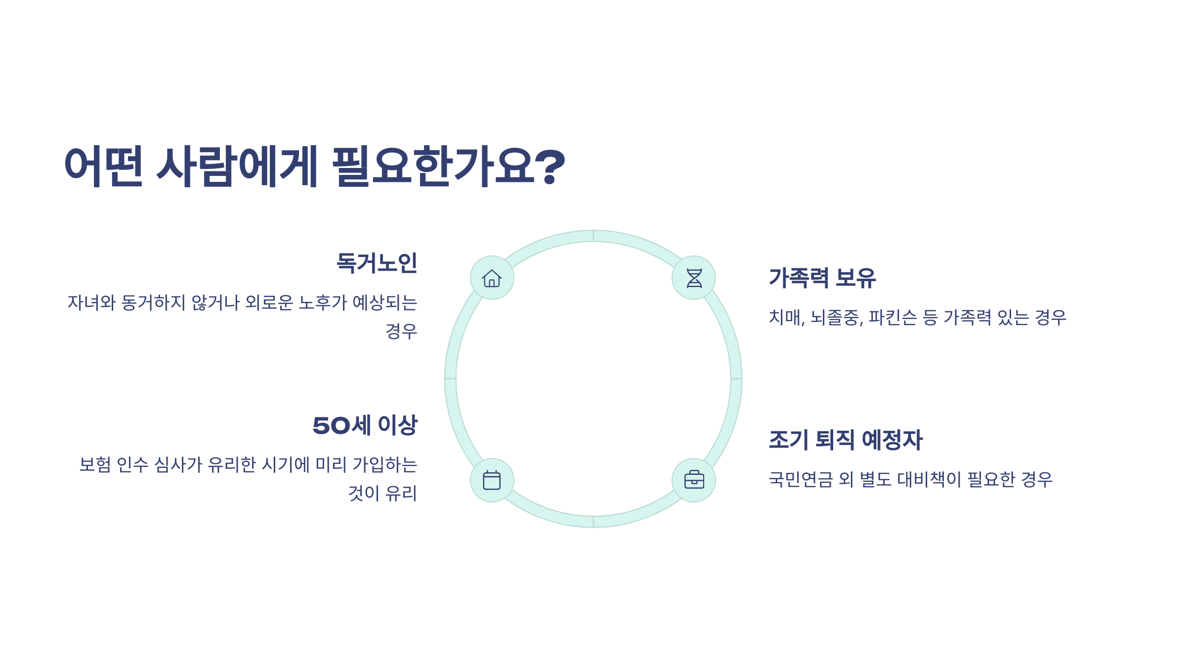 노인성 질환이나 일상생활 지원이 필요한 상태가 되면