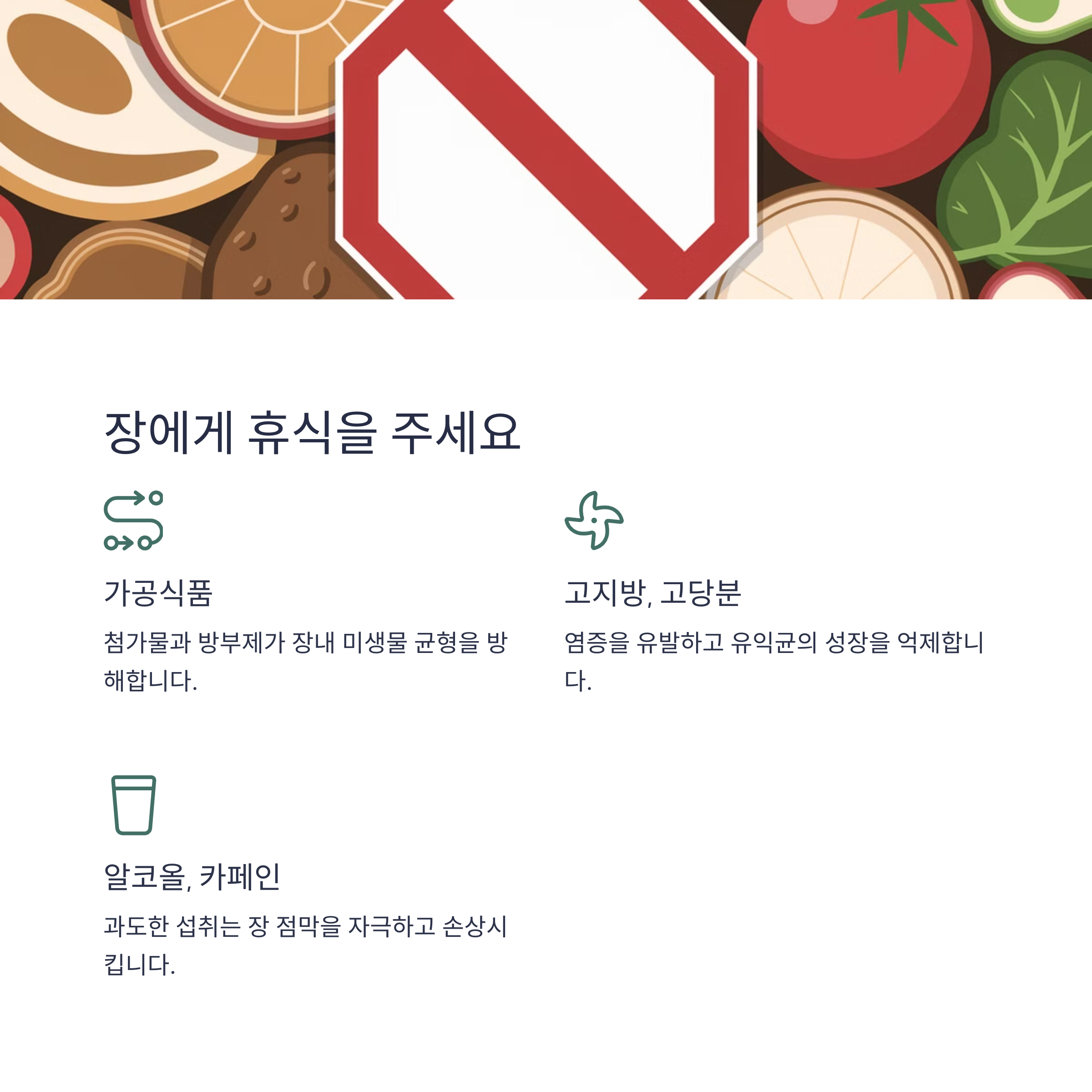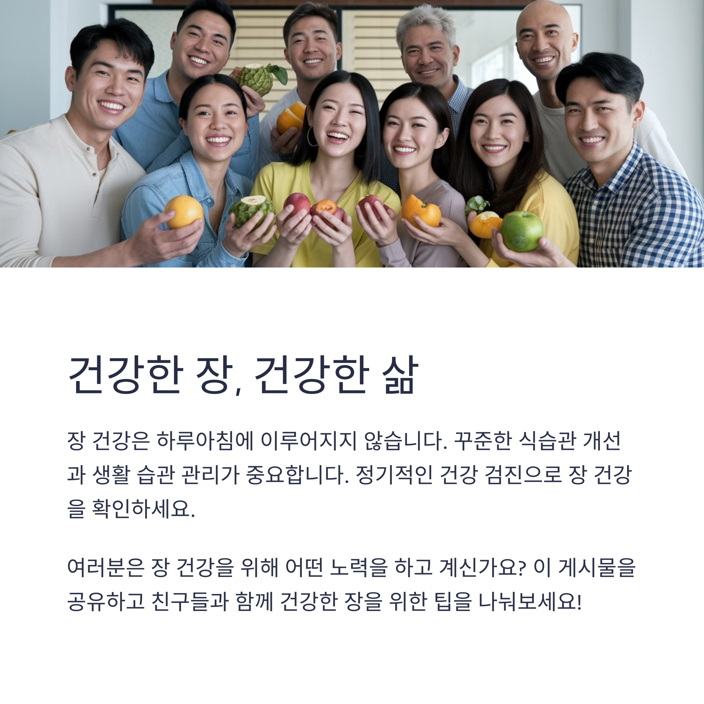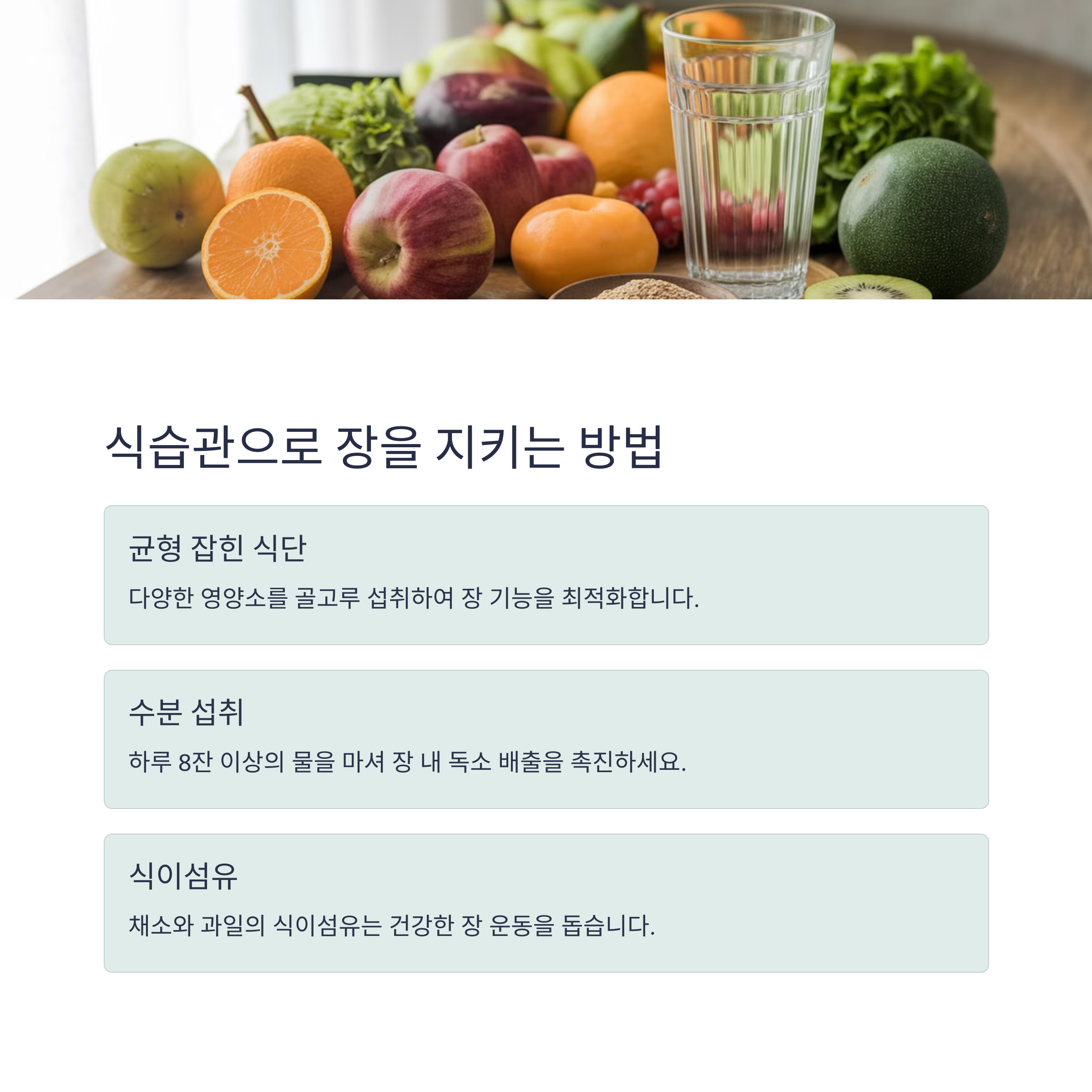 | 장 건강의 중요성 | 장은 면역력과 영양 흡수에 중요한 역할을 합니다. |