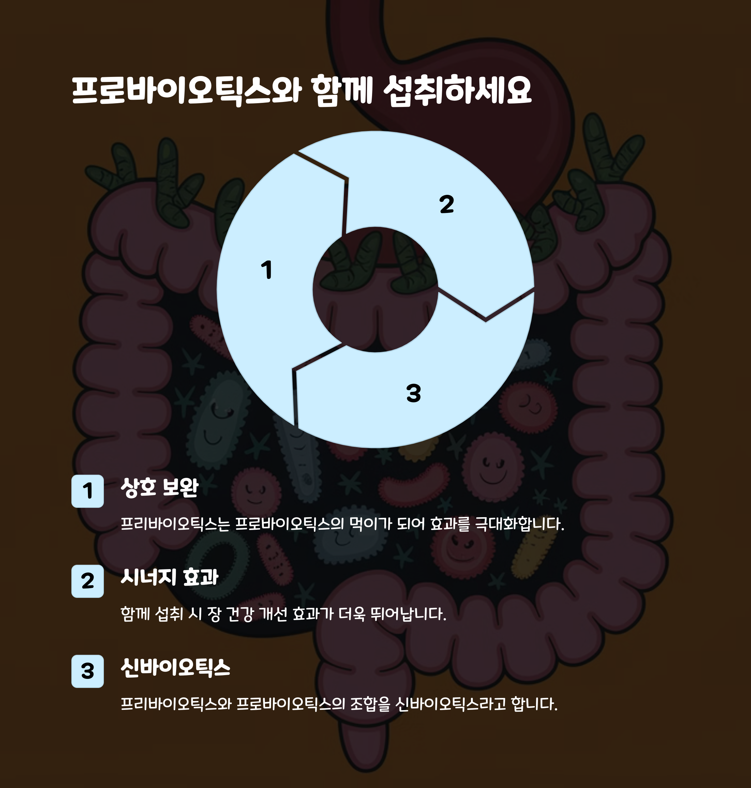 | 프리바이오틱스란? | 장내 유익균의 성장을 돕는 식이섬유 성분입니다. |