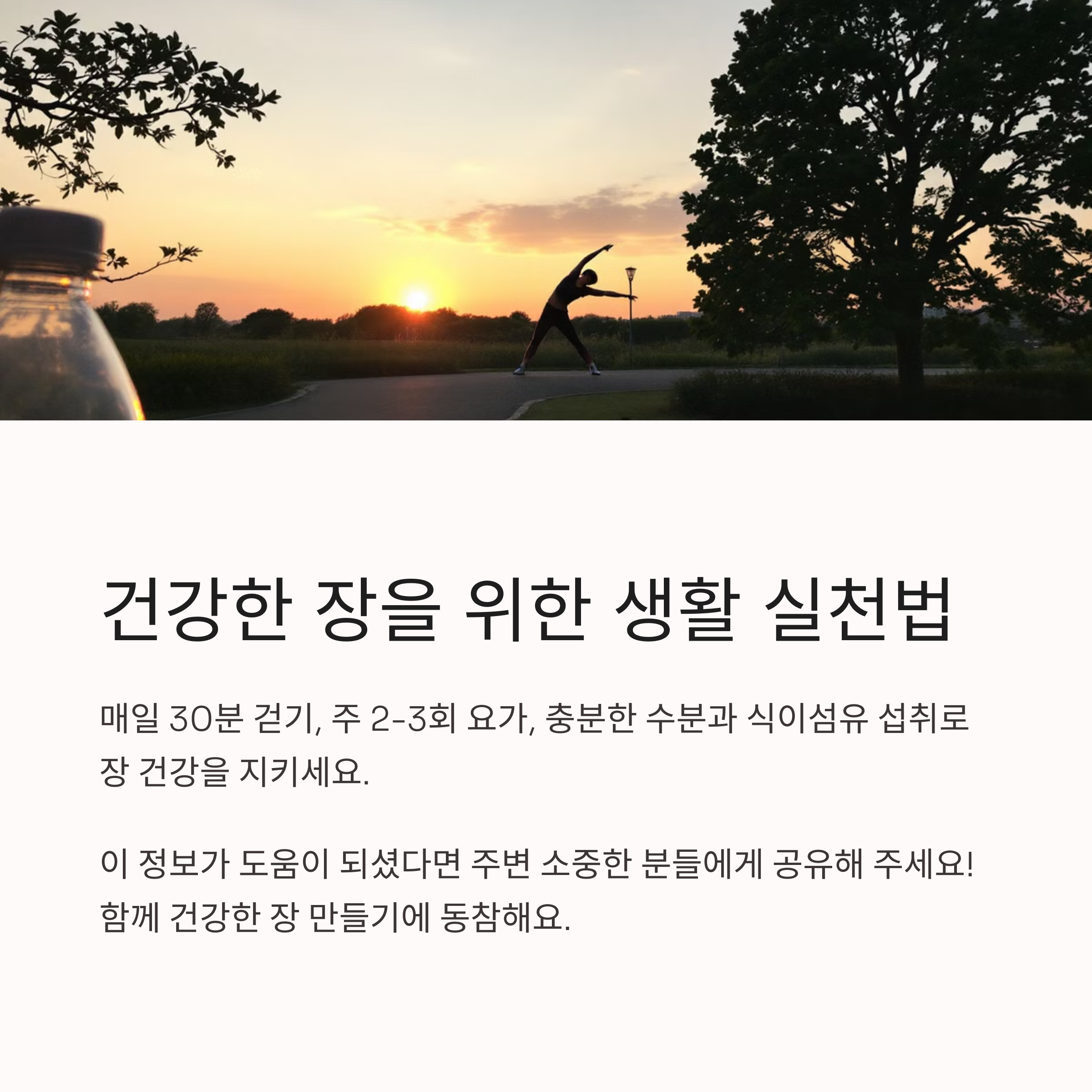 장 건강을 유지하기 위해 실천하고 있는 운동이 있으신가요? 또는 추천하고 싶은 운동법이 있으면 댓글로 공유해 주세요!
