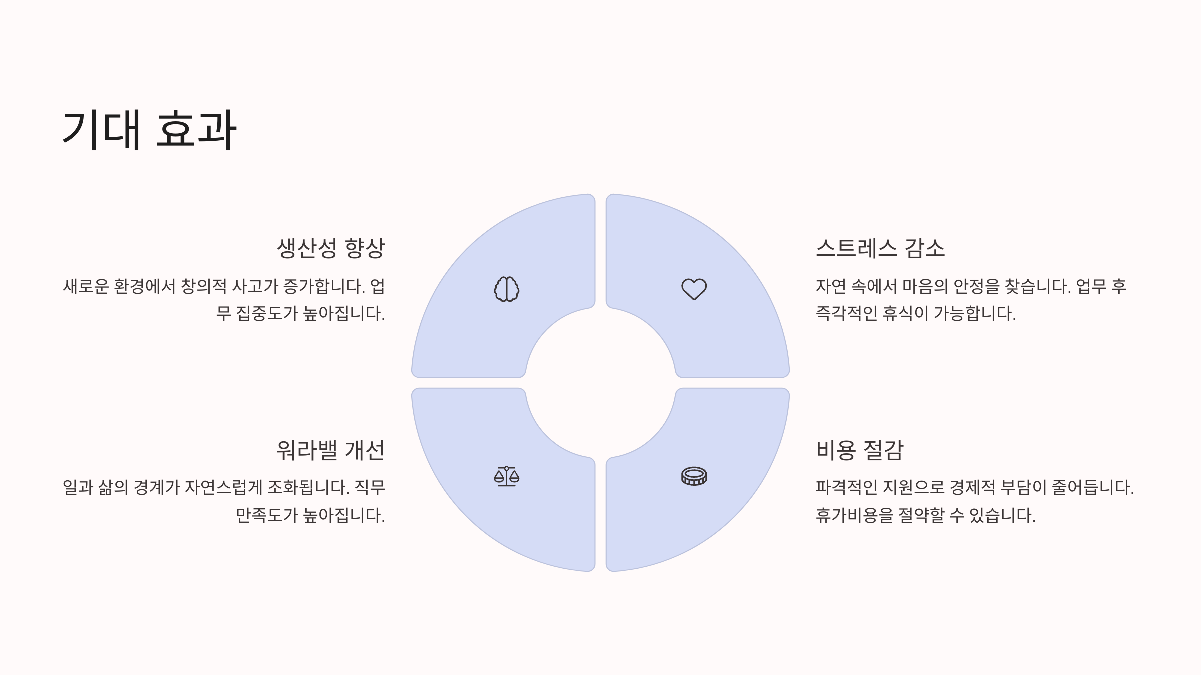 - 새로운 환경에서의 업무 효율 및 창의력 증진
