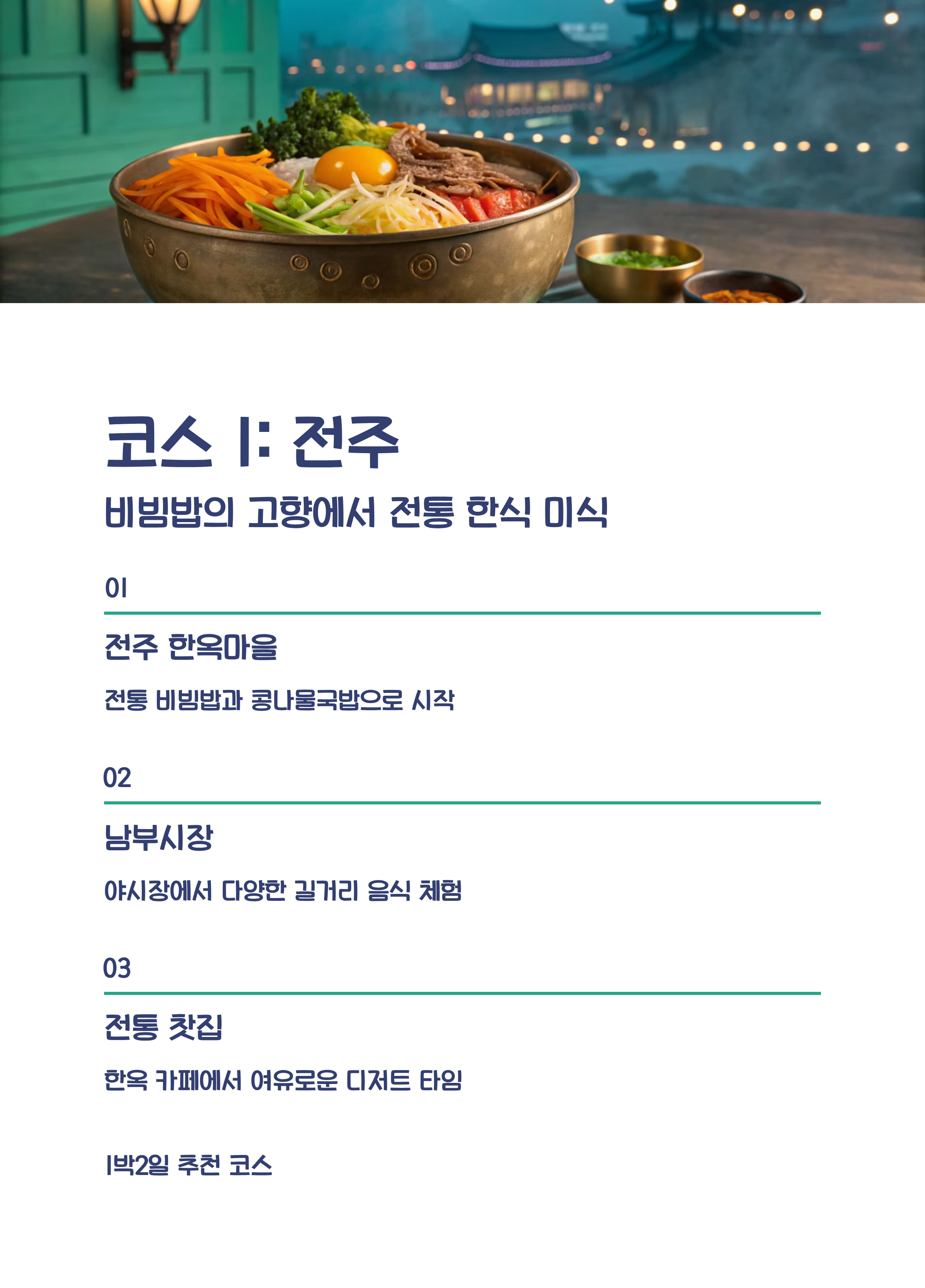 🍜 코스 1: 전주 - 비빔밥의 고향에서 전통 한식 미식 (1박2일)