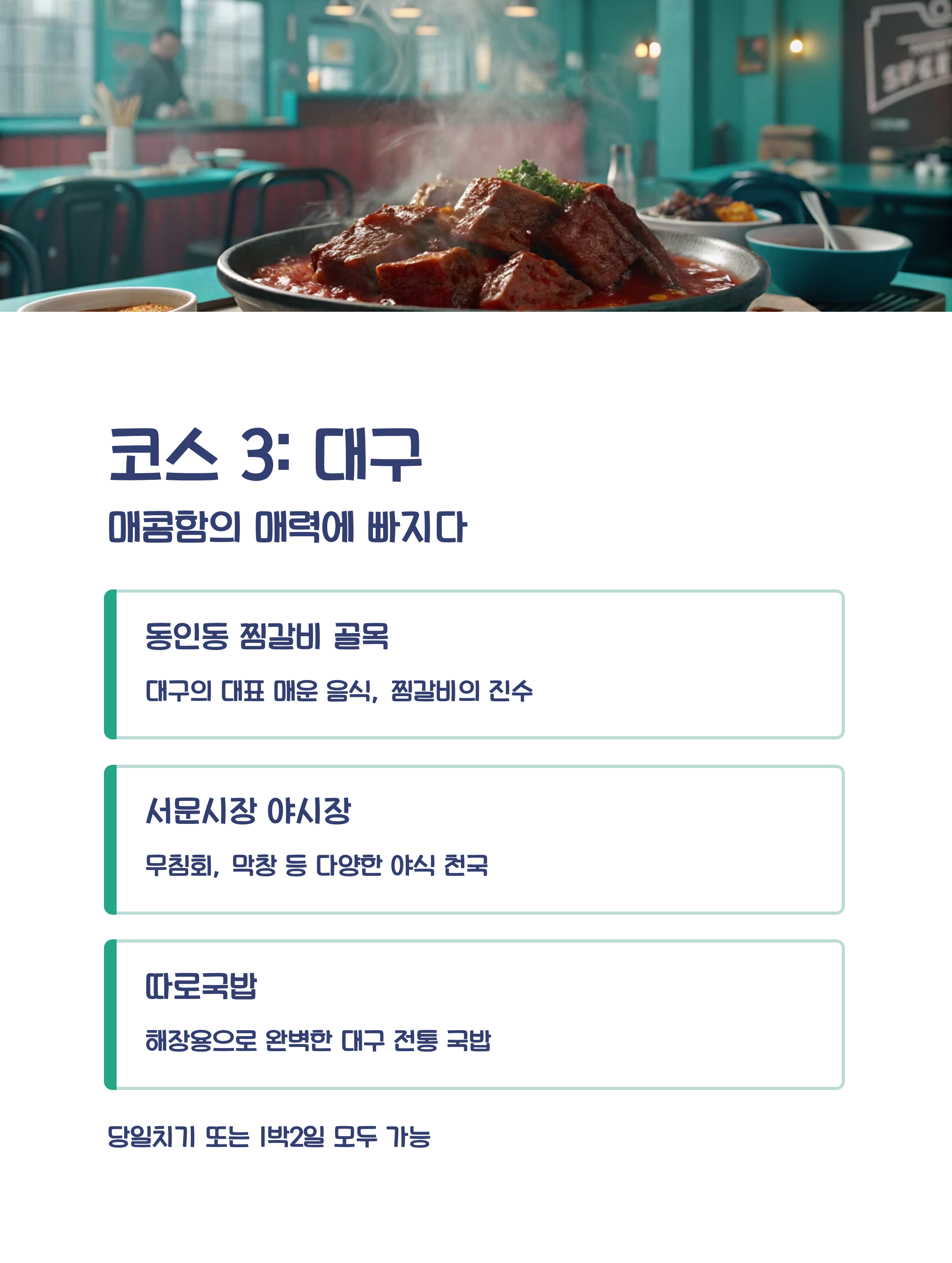 🌶️ 코스 3: 대구 - 매콤함의 매력에 빠지다 (당일치기 또는 1박2일)