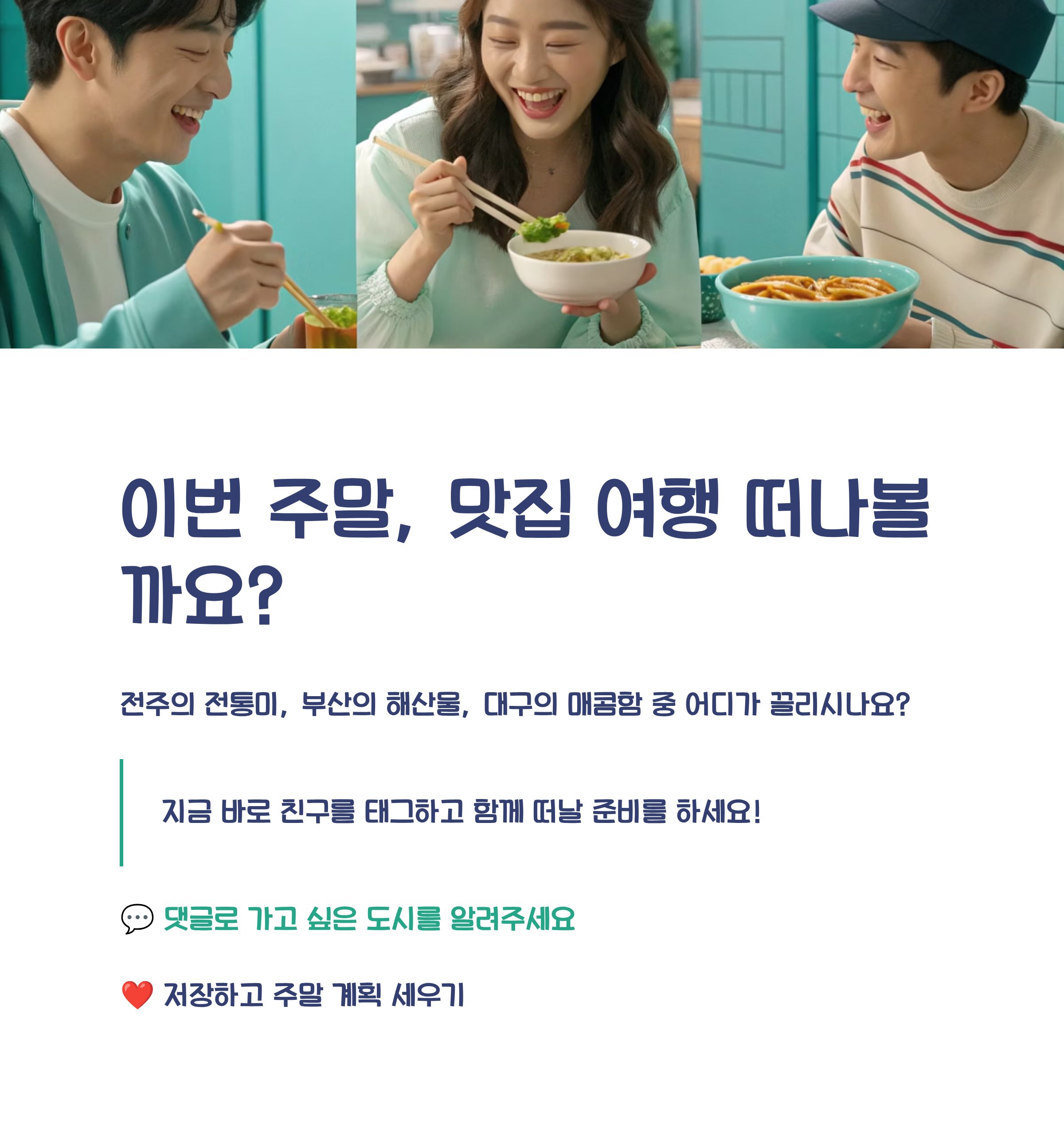 맛있는 주말 여행, 지금 계획하세요! 📋