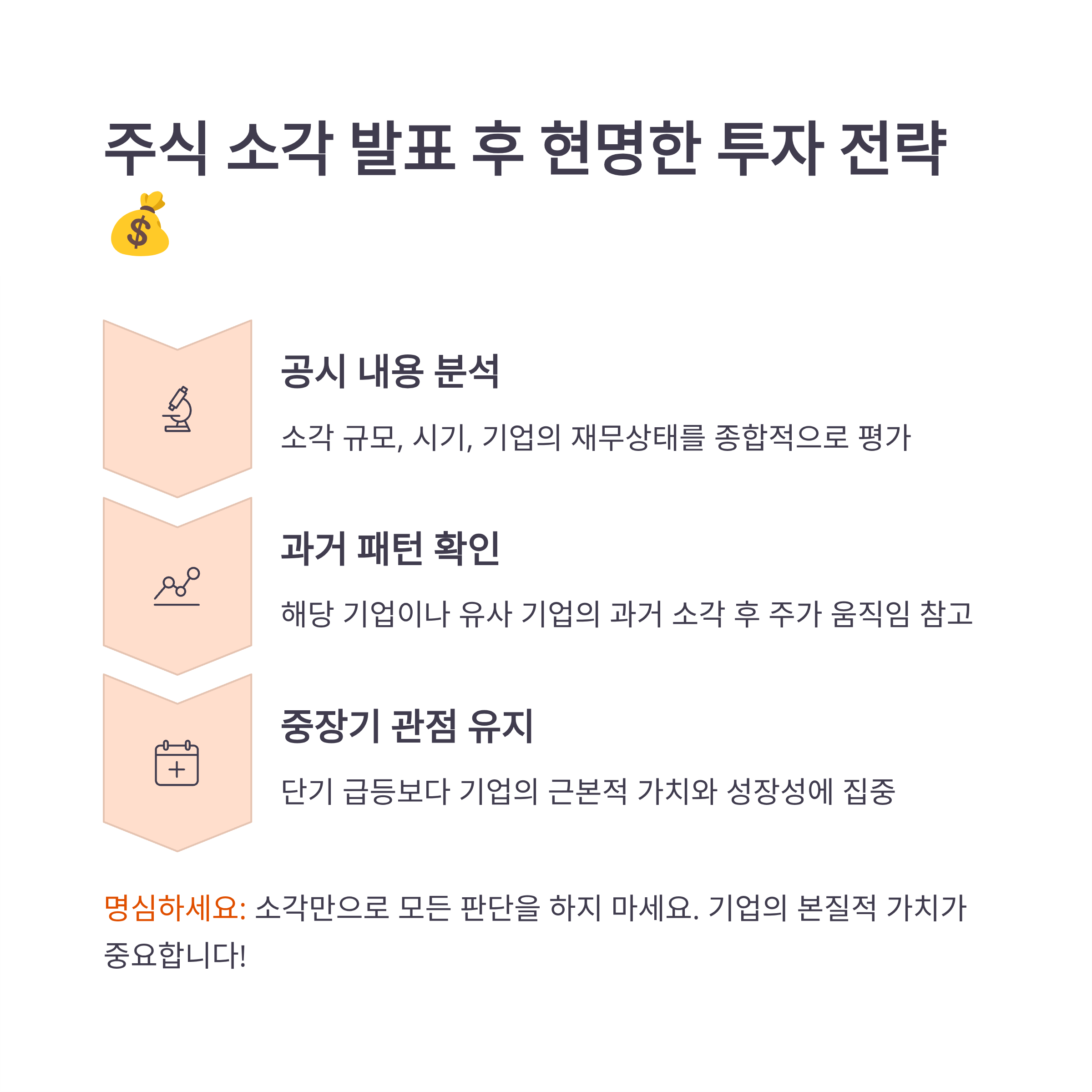 소각 공시 내용 중 '소각 목적'을 면밀히 살펴보세요. 단순한 주가 부양 목적 외에 재무구조 개선이나 결손 보전을 위한 '감자' 방식의 소각이라면, 이는 기업의 재무 상황이 좋지 않다는 신호일 수 있으므로 더욱 신중하게 접근해야 합니다.