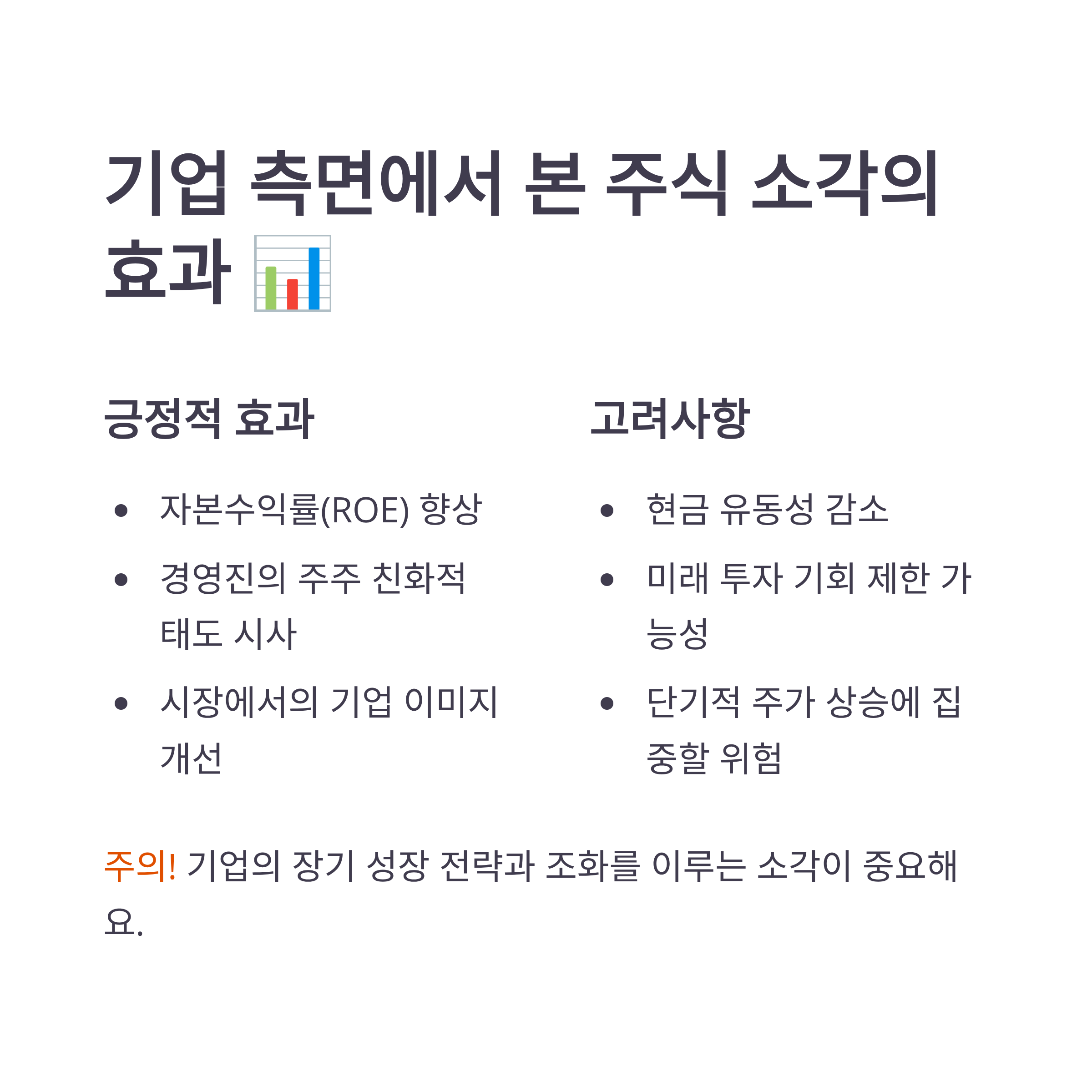 자사주 소각은 주주뿐만 아니라, 기업 자체의 재무 구조와 경영 전략에도 중요한 영향을 미칩니다. 기업 입장에서의 자사주 소각 효과를 이해하는 것도 현명한 투자 판단에 도움이 됩니다.