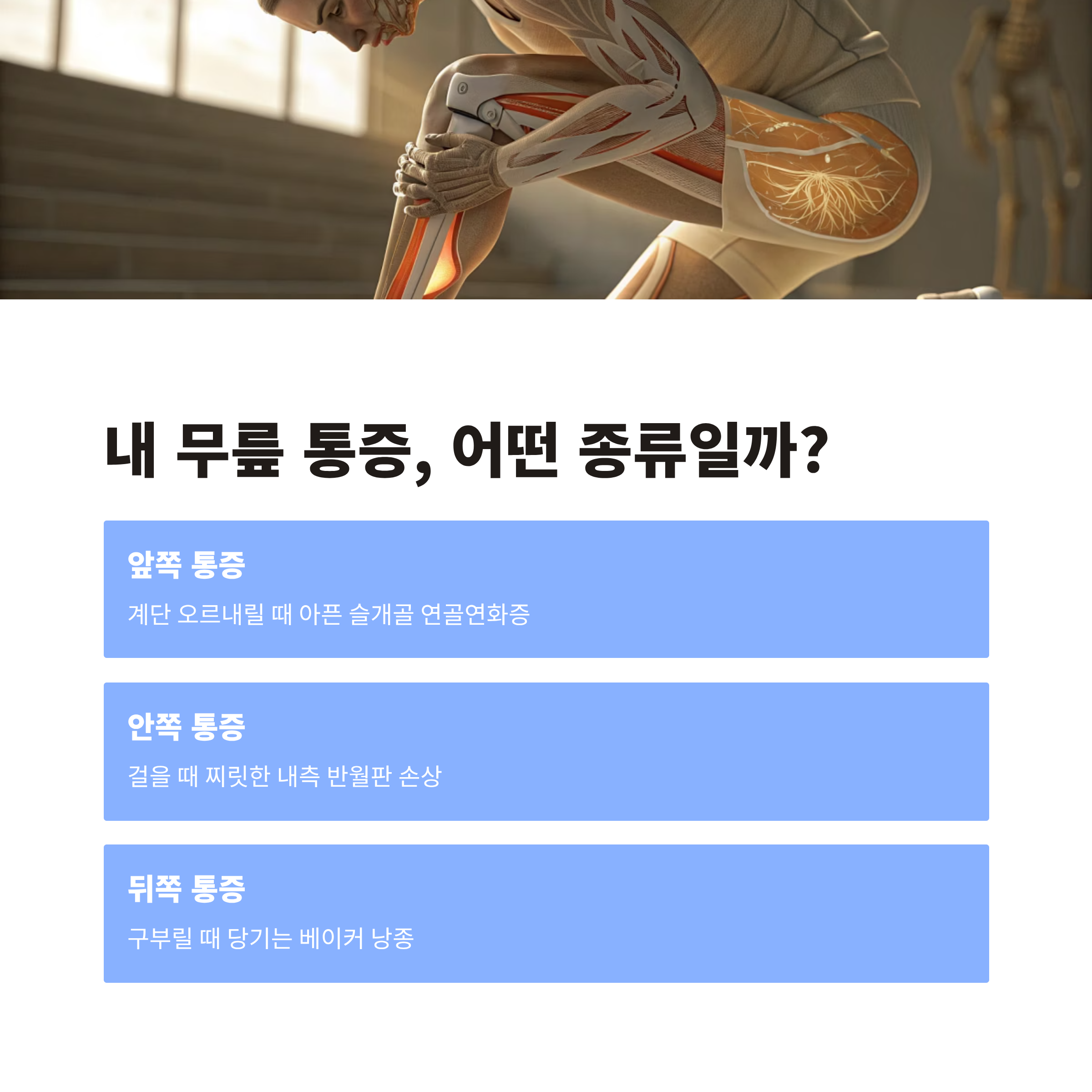 내 무릎 통증, 어떤 종류일까? (증상으로 알아보기) 🔍