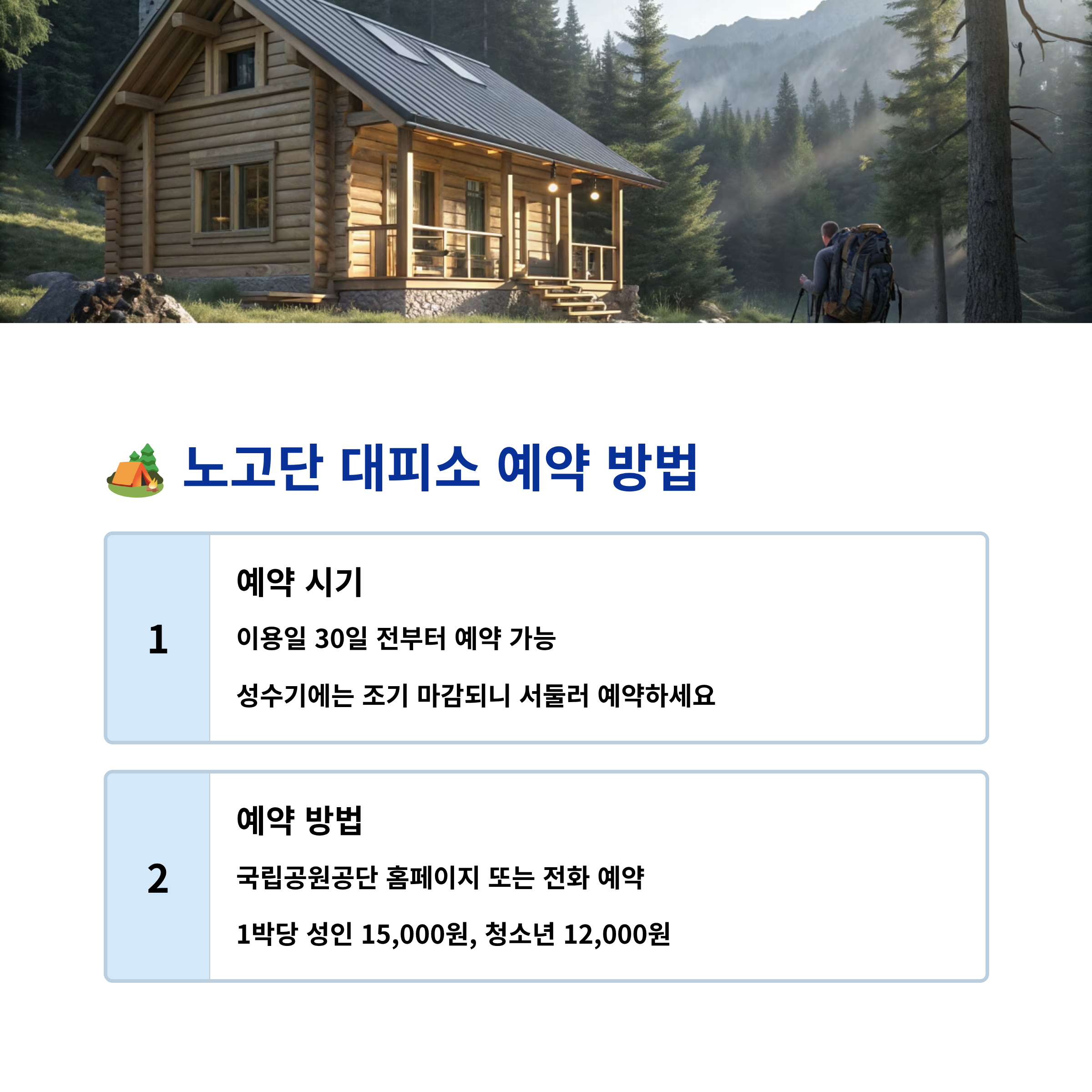 - 성수기 예약: 9월, 10월 주말은 대피소 성수기로 예약 경쟁이 매우 치열합니다. 추첨제와 선착순을 병행하여 운영될 수 있으니 미리 날짜를 확인하고 빠르게 예약하는 것이 좋습니다.