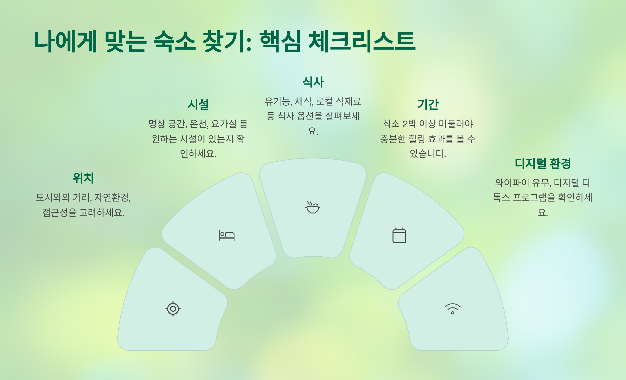 수많은 힐링 숙소 중에서 나에게 꼭 맞는 '인생 숙소'를 찾기 위해서는 몇 가지 기준을 가지고 꼼꼼하게 살펴보는 것이 중요합니다.
