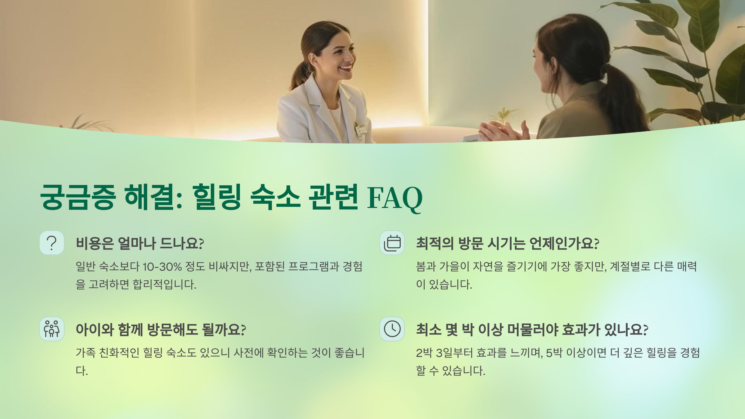 ❓ 궁금증 해결: 힐링 숙소 관련 FAQ