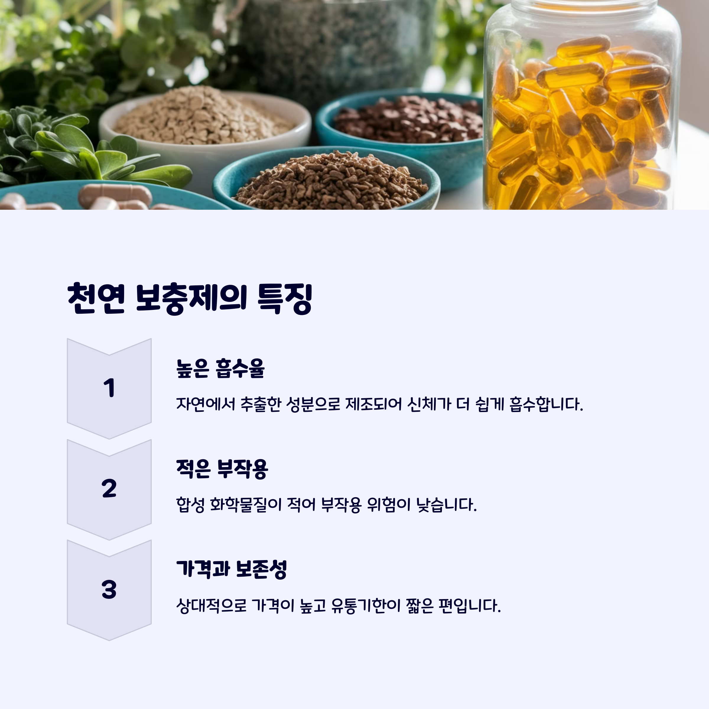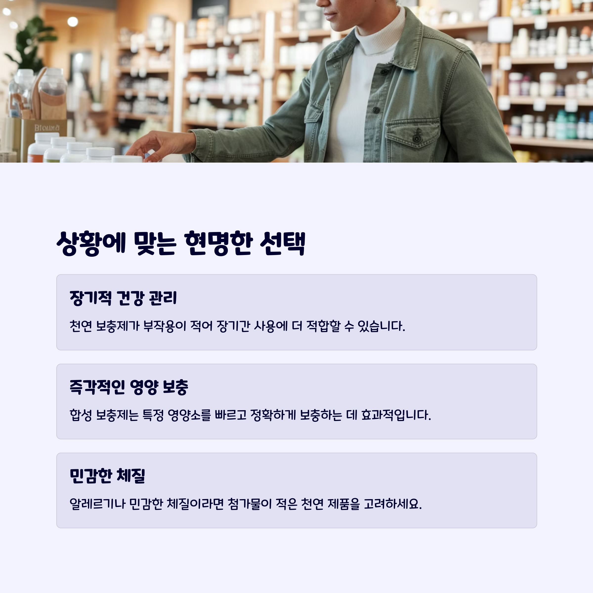 | 천연 보충제 | 합성 보충제 | 추천 대상 |