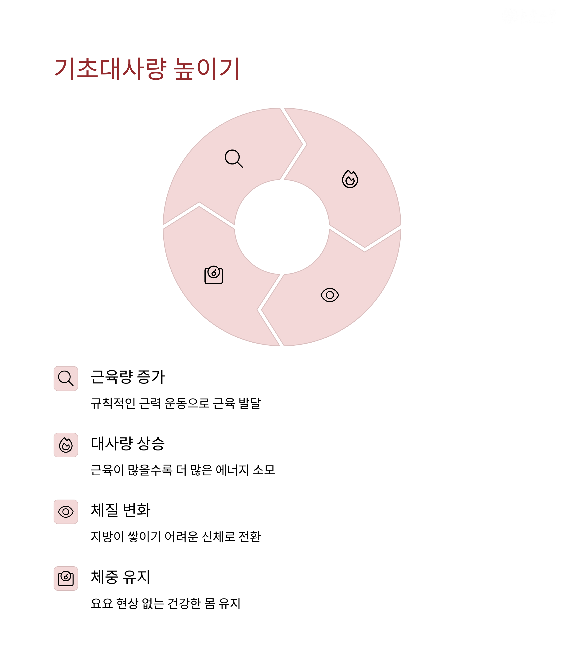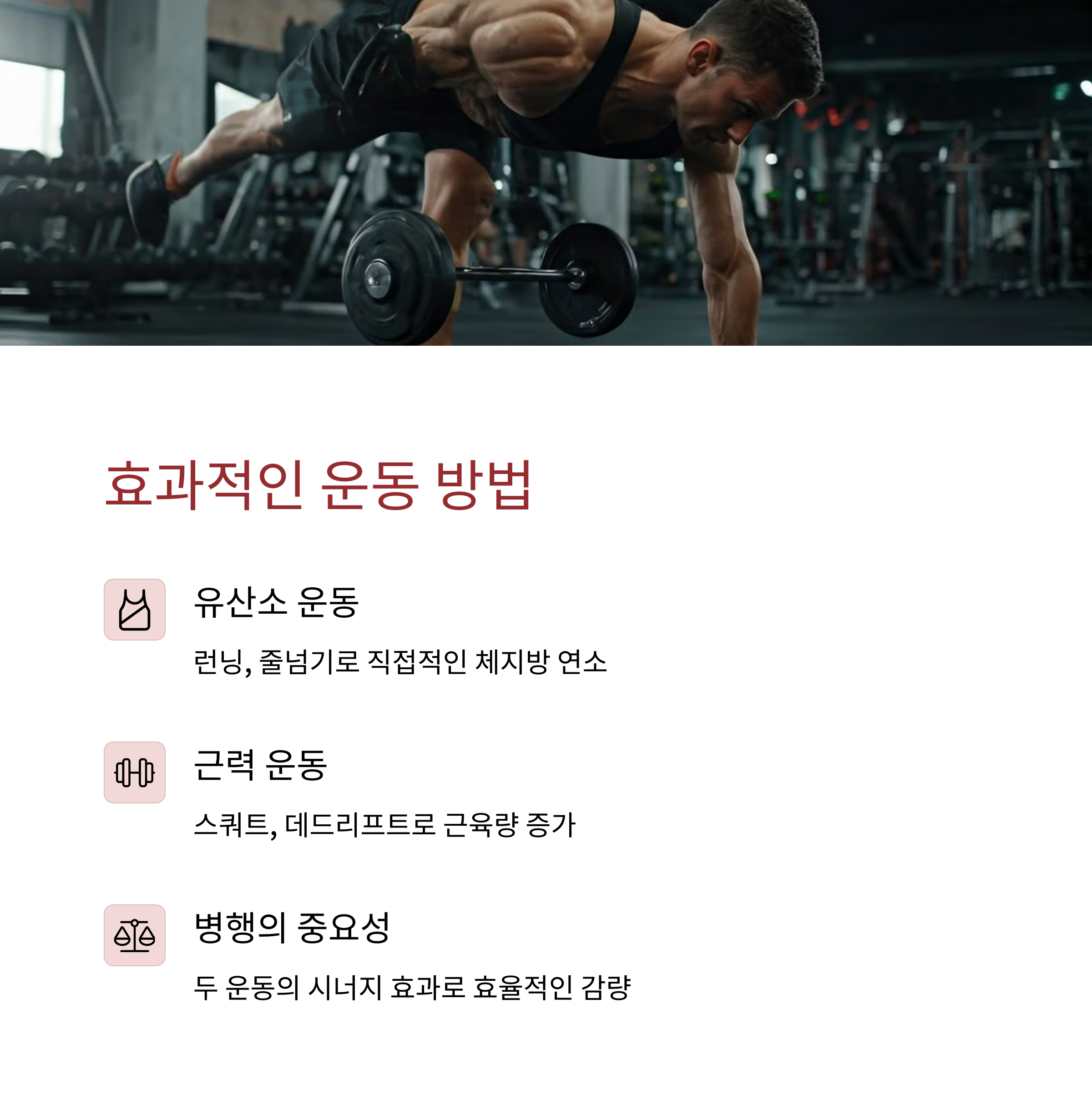 | 체지방 감량 | 올바른 식단과 운동 병행이 필수! |