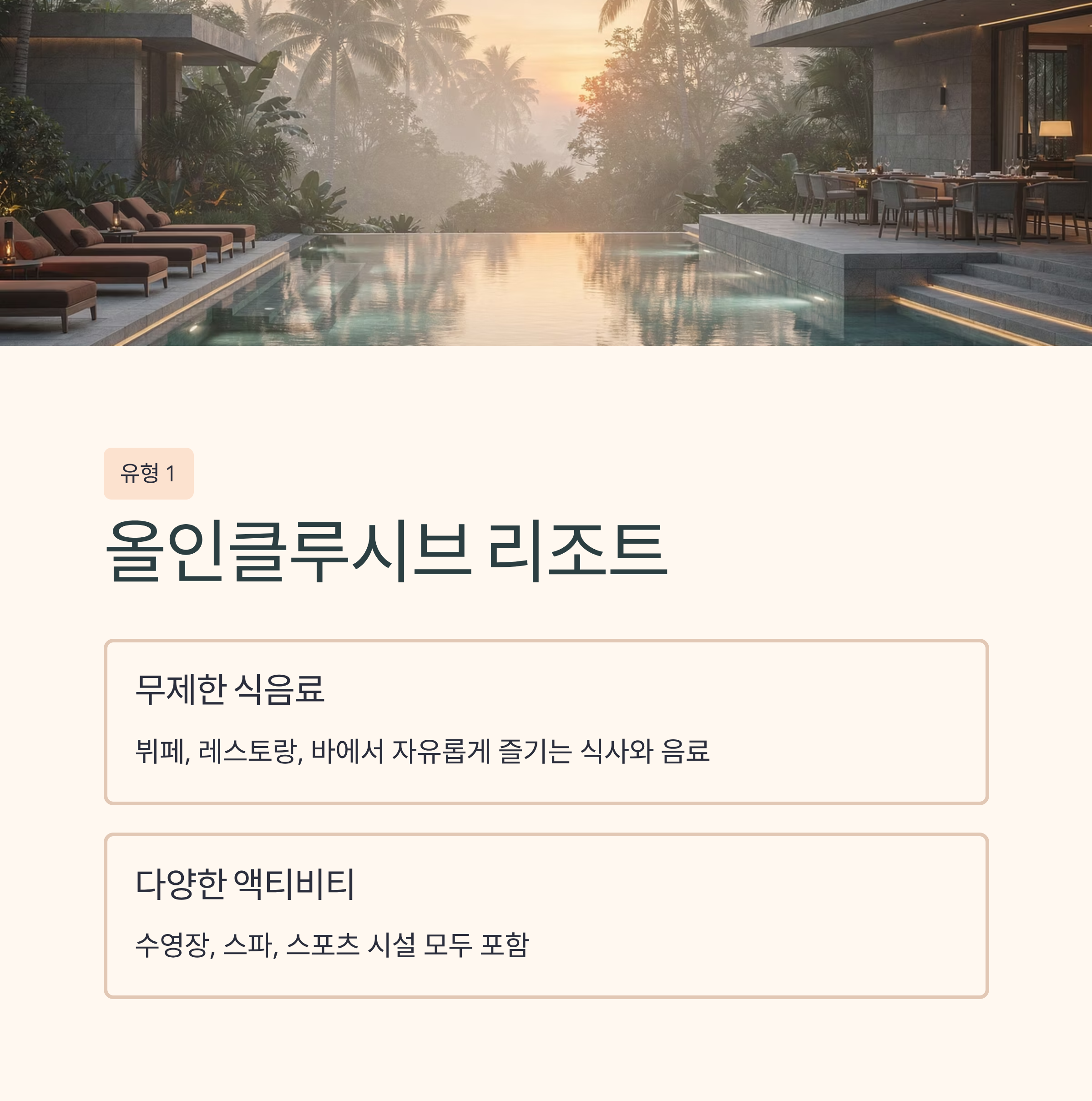 🛌 유형 1: 올인클루시브 리조트 (All-Inclusive Resort)