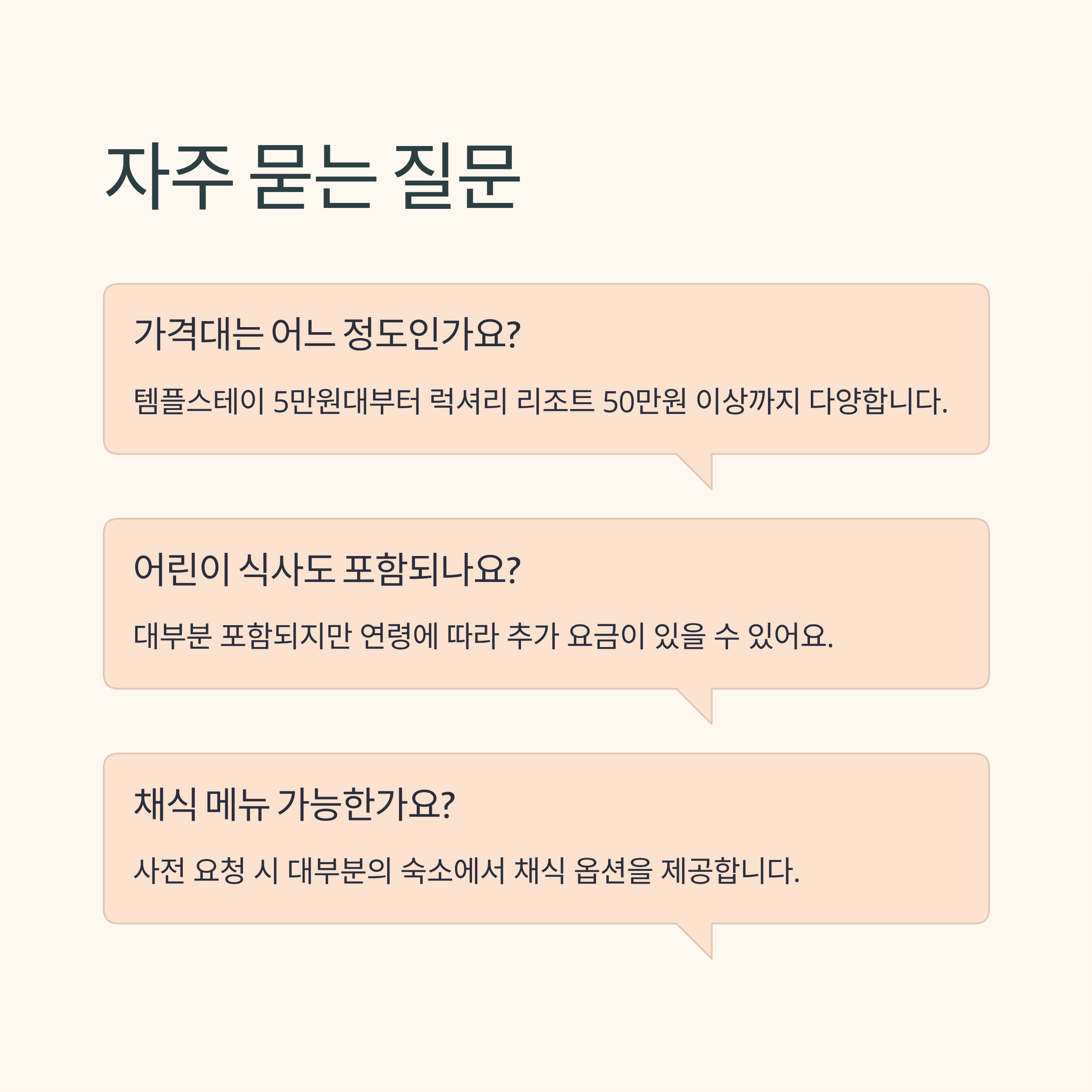 🔽 3끼 제공 숙소 관련 궁금증을 해결해 줄 FAQ를 확인해보세요 🔽