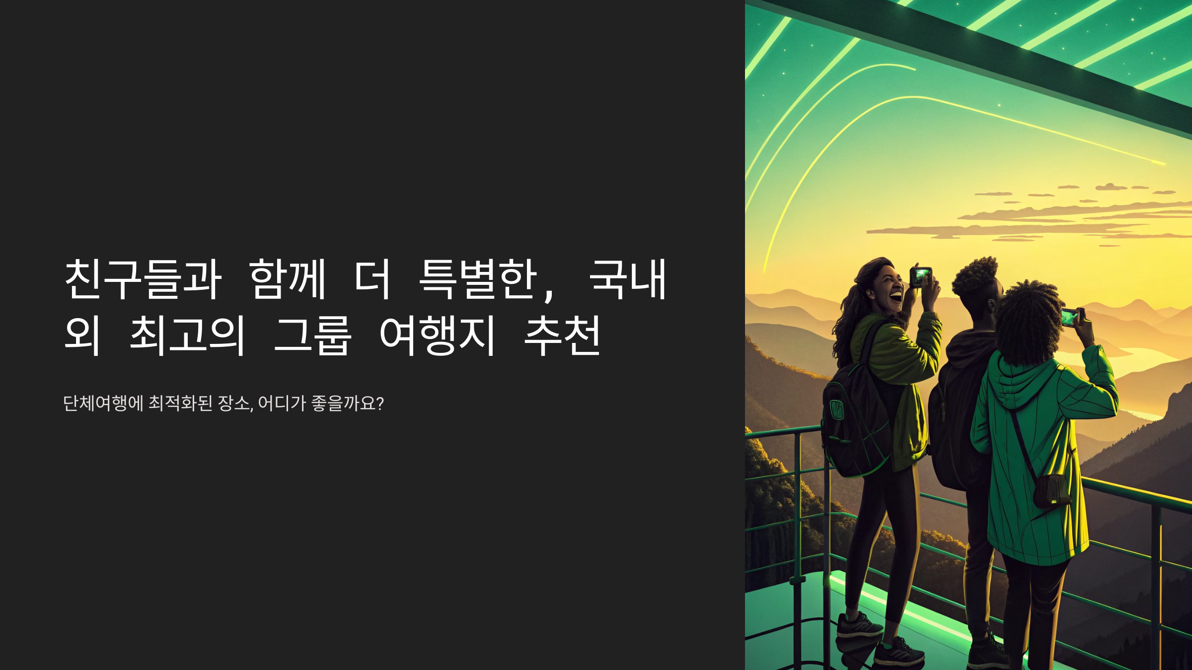 이 글에서는 교통, 숙소, 액티비티까지 그룹 여행에 최적화된 국내외 여행지를