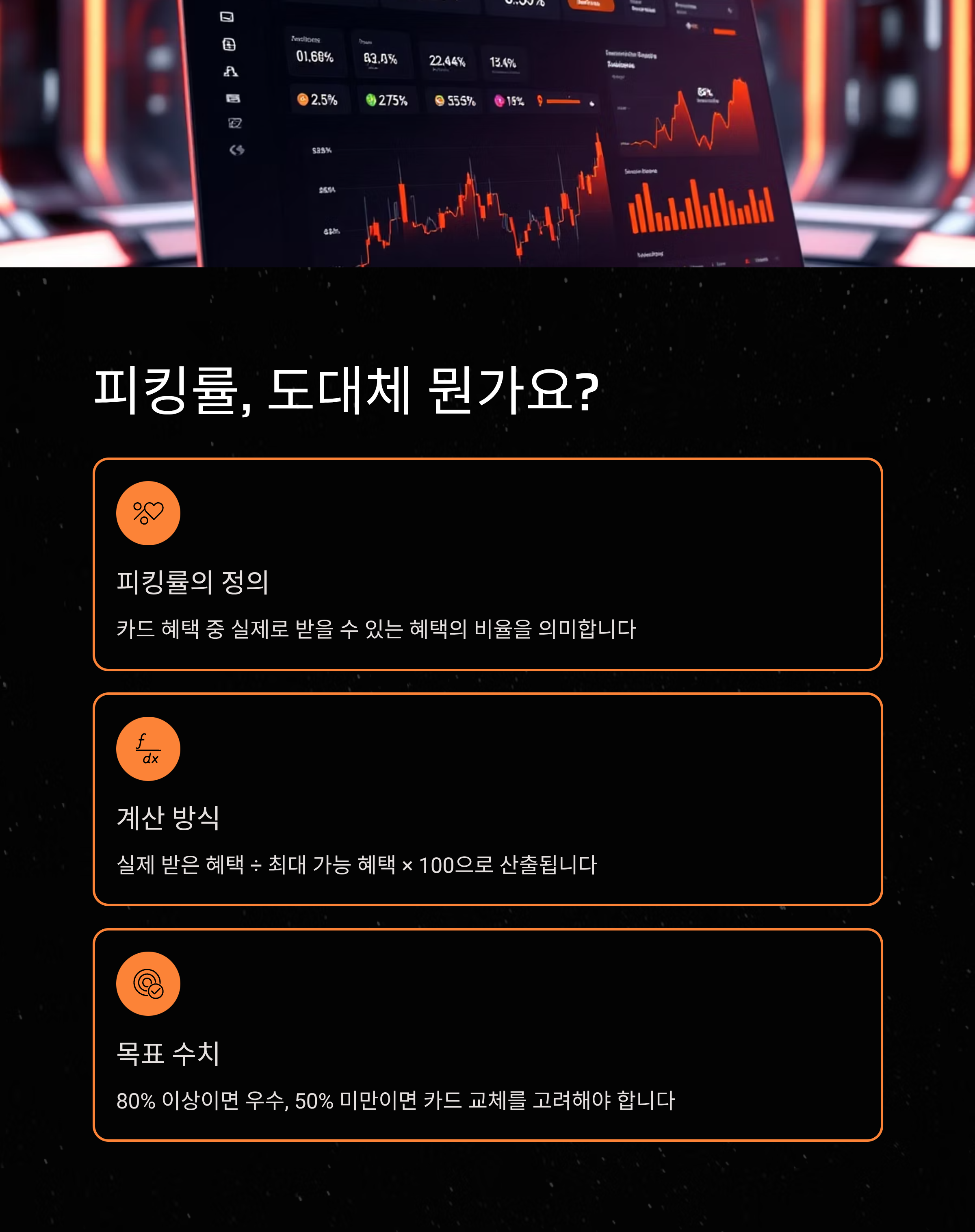 (월 총 혜택 금액 ÷ 월 총 카드 사용 금액) × 100 = 피킹률(%)
