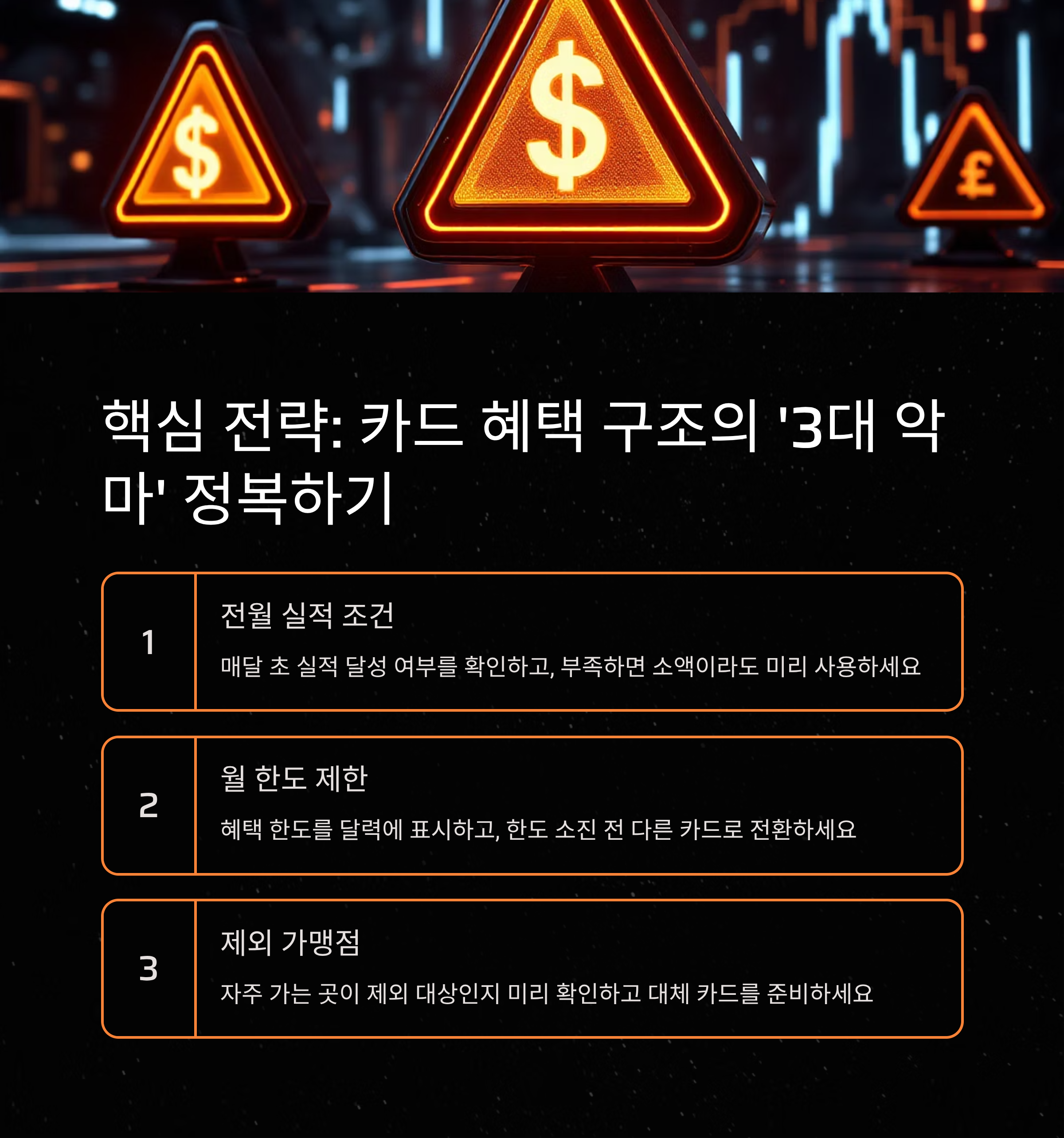 핵심 전략: 카드 혜택 구조의 '3대 악마' 정복하기 👿